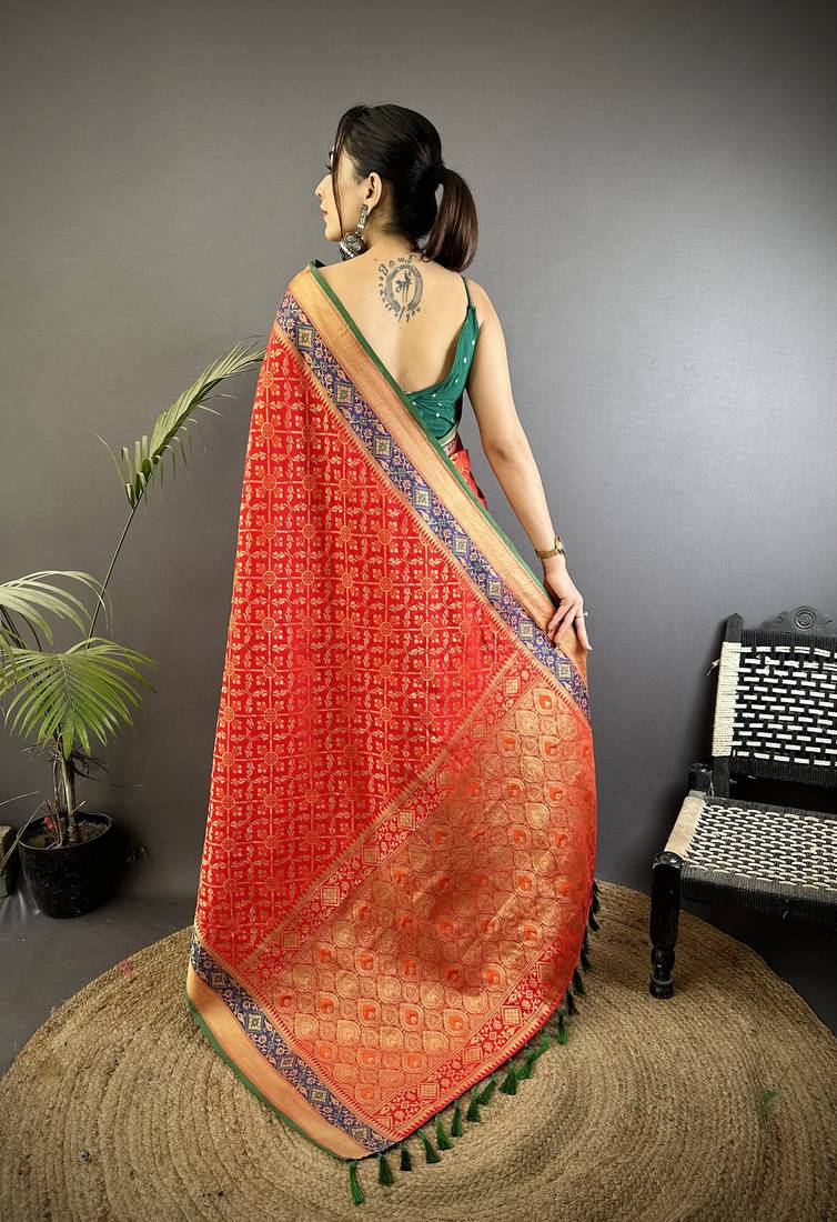 If You're Looking For A Bestseller Saree That Blends Tradition, Trend And Everyday Wearability, This Red Patola Masterpiece Is The One To Bring Home. Designed For Virality And Loved By Women Across Generations, It Captures Style, Culture And Celebration In Every Inch. Add This Timeless Beauty To Your Wardrobe And Let Your Festive Looks Shine Brighter Than Ever.