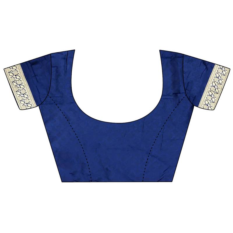 | Product Name | Royal Blue Lichi Silk Blend Jacquard Zari Woven Motifs Banarasi Saree | |