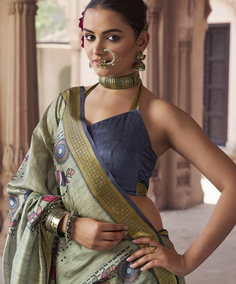 | Product Name | Sage Green Soft Silk Blend Madhubani Digital Printed Saree | |