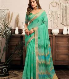 | Product Name | Teal Green Linen Ikkat Printed Ready To Wear Saree With Pocket | |