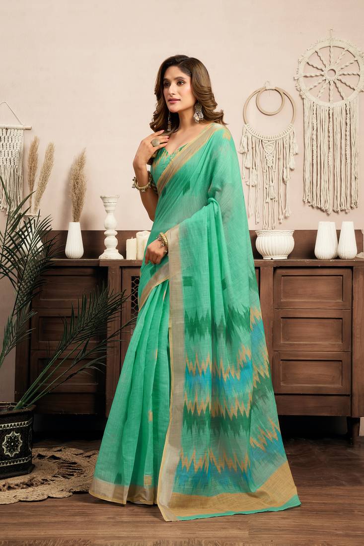 | Product Description | Step Into The World Of Trending Women’s Ethnic Wear With This Teal Green Linen Ikkat Printed Saree, Designed For The Modern Woman Who Loves Style Without Compromise. This Ready To Wear Saree Combines Traditional Ikkat Patterns With Contemporary Convenience, Featuring A Smart Pocket For Those Must Have Essentials. Perfect For Home Page Hits, Top Ranking Mirraw Searches, And Bestsellers, It’s A Must Have For Women Who Want Effortless Elegance In Every Moment.