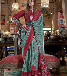 Teal soft silk blend ikkat printed patola saree