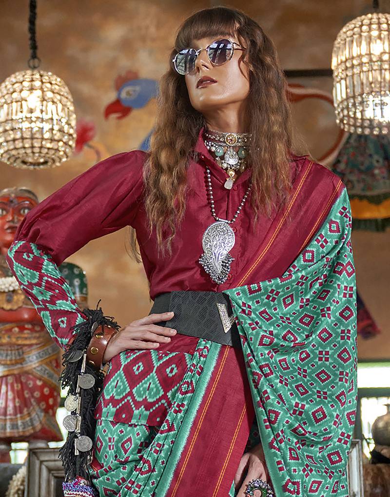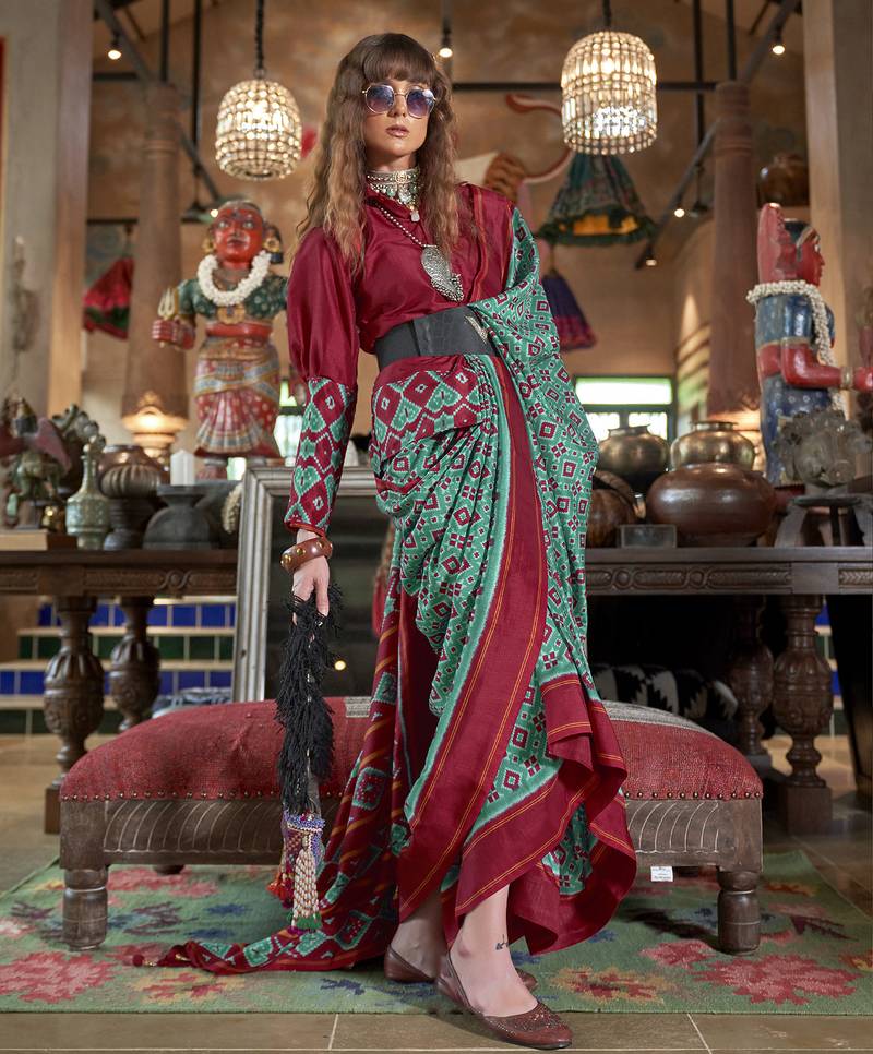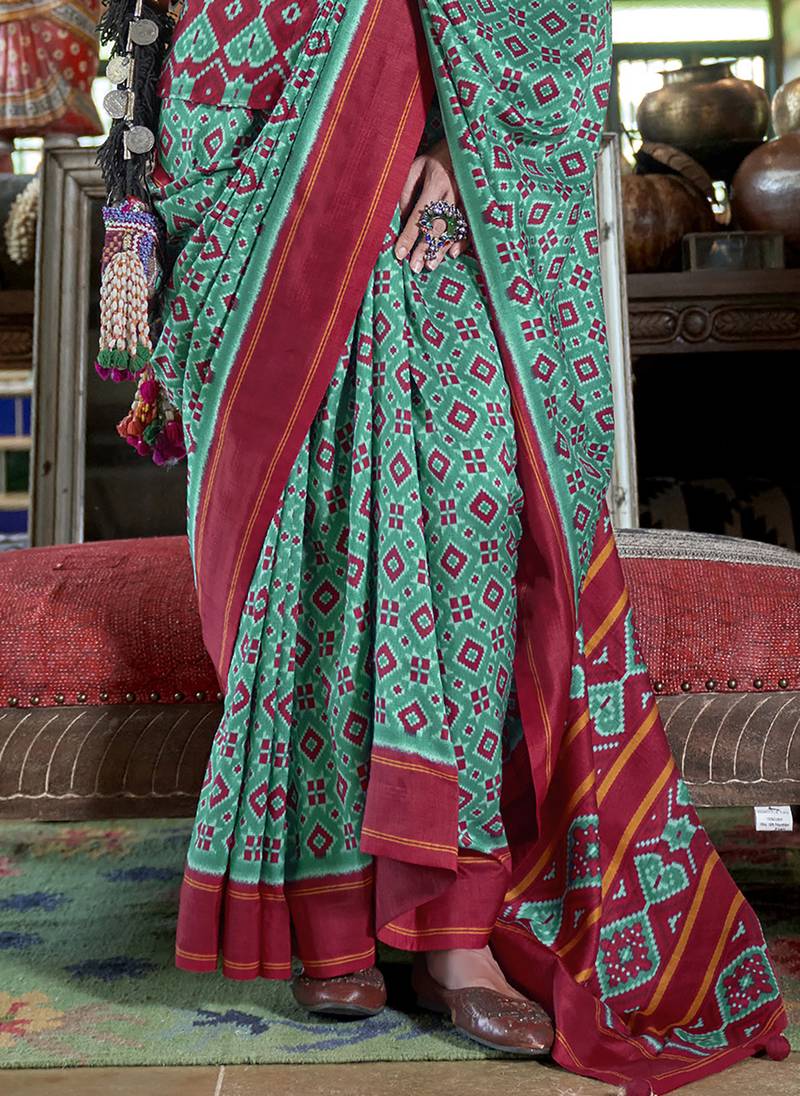 | Product Name | Teal Soft Silk Blend Ikkat Printed Patola Saree | |