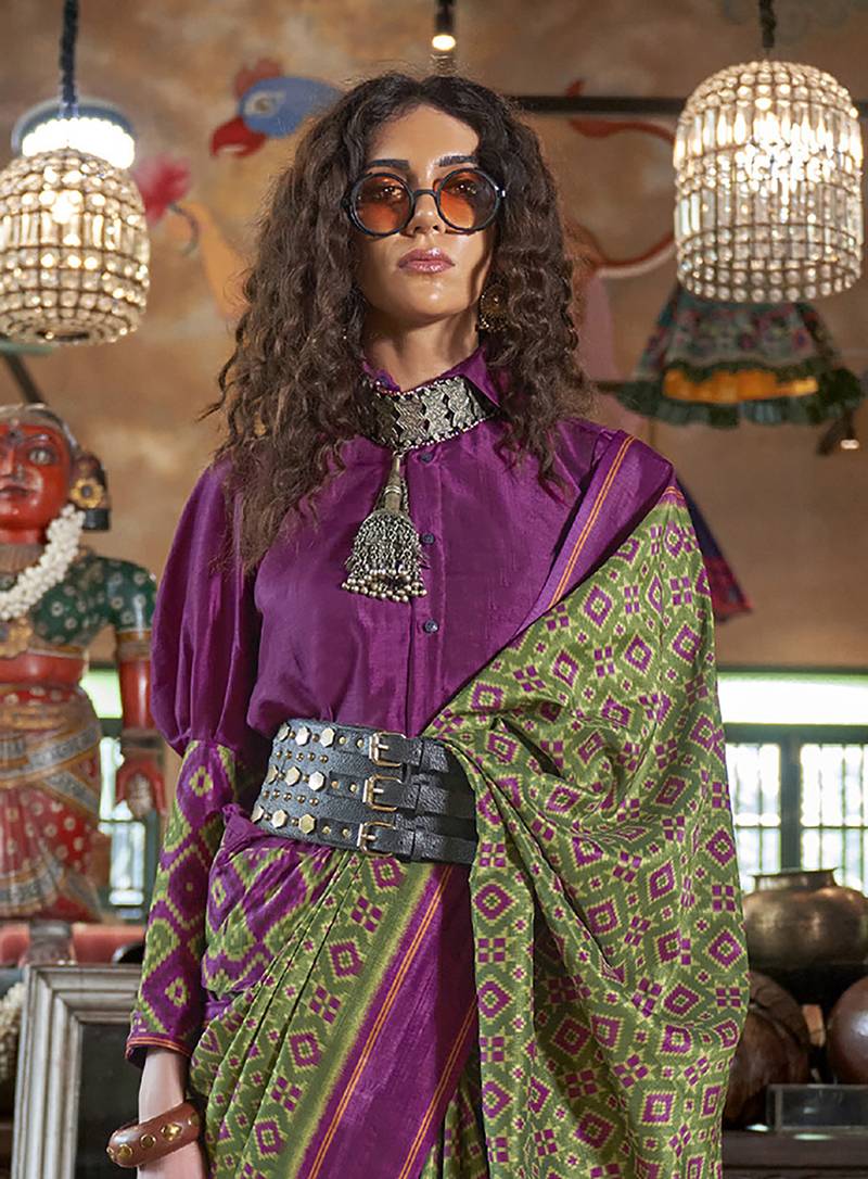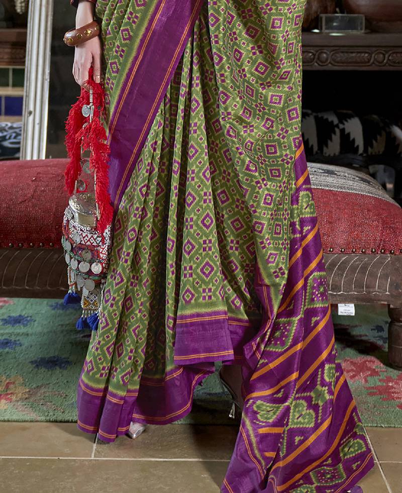 | Product Name | Vibrant Green Soft Silk Blend Ikkat Printed Patola Saree | |