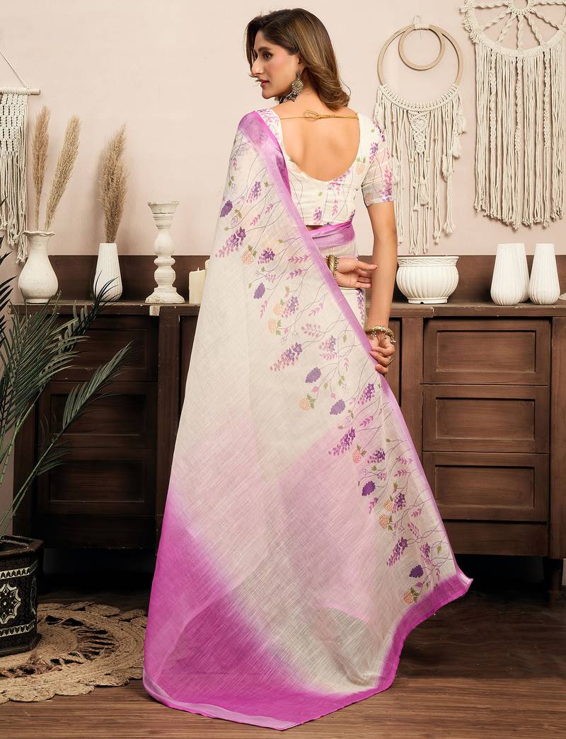 | Product Name | White Linen Floral Printed Ready To Wear Saree | |