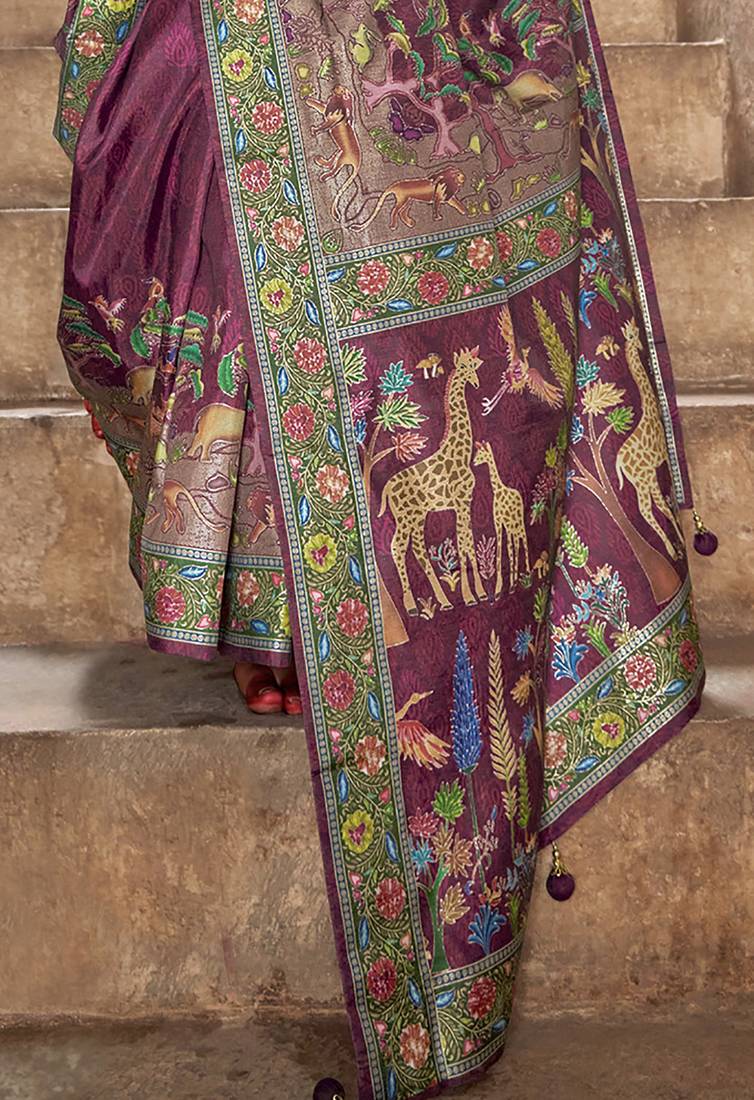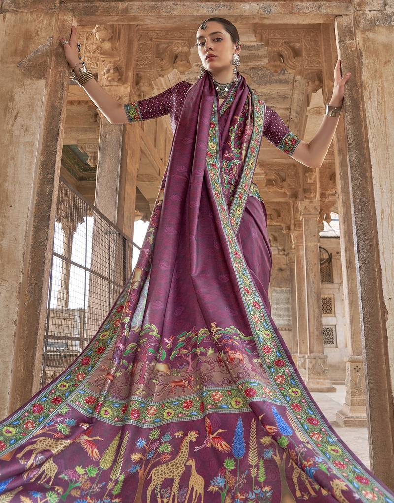 | Product Name | Wine Soft Silk Blend Madhubani Art Printed Saree | |
