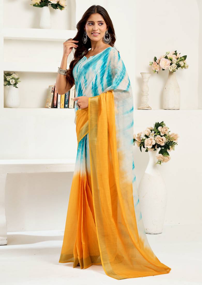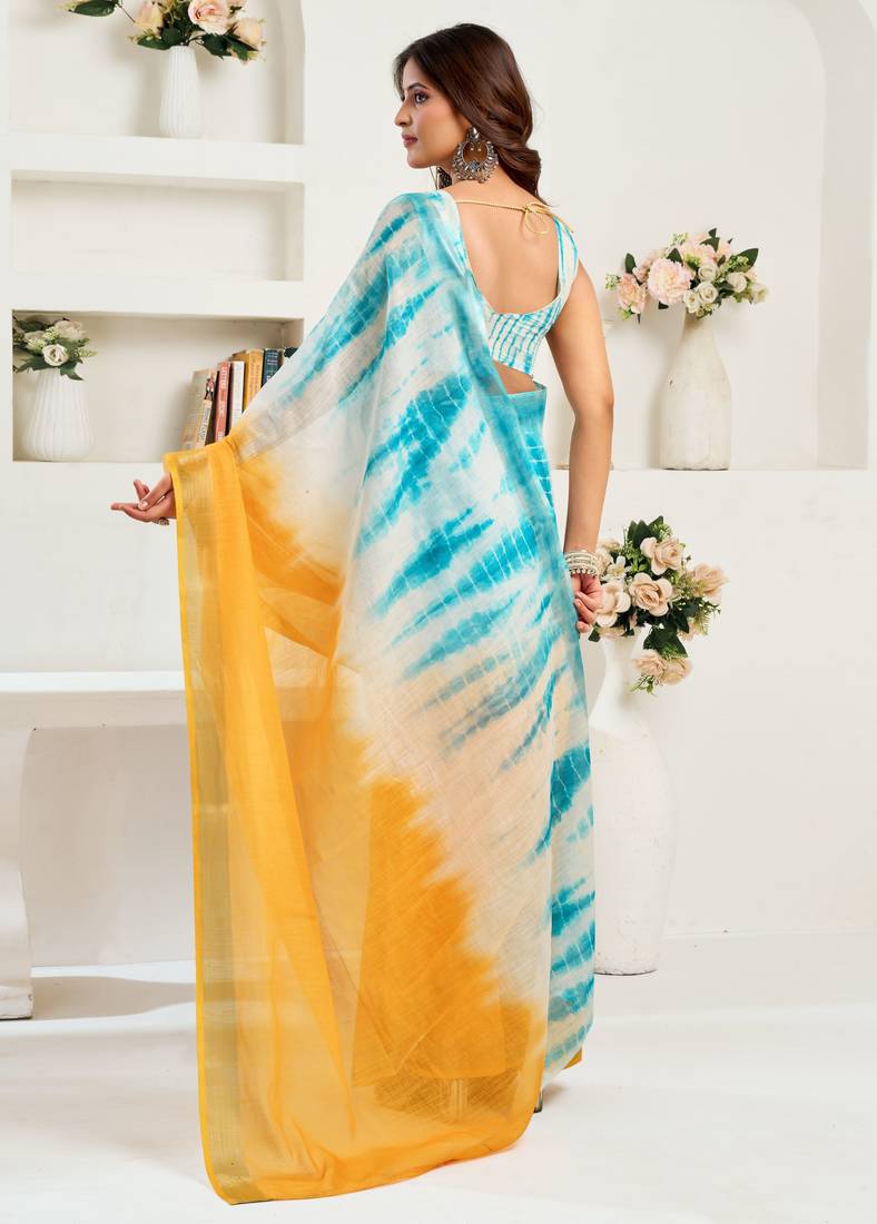 | Product Name | Yellow & Sky Blue Linen Abstract Printed Ready To Wear Saree | |