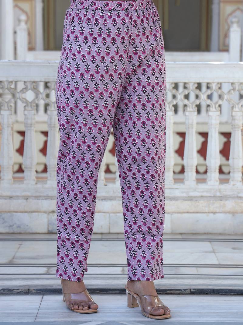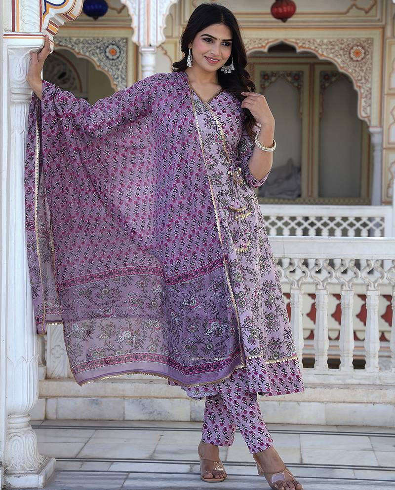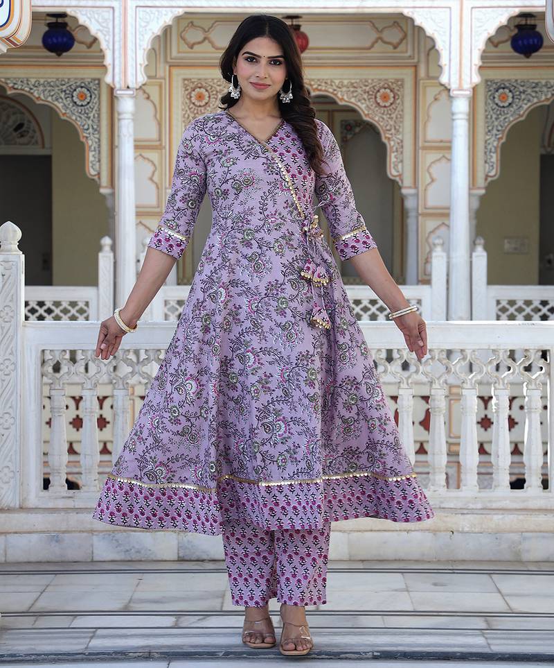 This Beautiful Ethnic Ensemble Is A Brown And Multi Color Hand Block Printed Kurta Set With Palazzo Pants And A Dupatta. It Is A Popular Style Of Traditional Indian Wear, Often Referred To As An Anarkali Suit Set, Perfect For Various Occasions From Festive Gatherings To Casual Daily Wear! Design: The Set Typically Features Exquisite Hand Block Prints In A Vibrant Floral Or Motifs Pattern, Primarily In Shades Of Brown With Green And Possibly Other Accent Colors.! Style: The Kurta (Tunic) Is Often An Anarkali Style, Which Has A Flared, Long Length (Calf To Ankle) And A Snugly Fitted Bodice. The Set Usually Includes Straight Fit Or Palazzo Style Pants And A Matching Or Complementary Dupatta (Scarf). Material: These Sets Are Commonly Made From Pure Cotton Or A Cotton Blend Fabric, Making Them Soft, Breathable, And Comfortable For All Day Wear. The Dupatta May Be Made Of Cotton Voile! Details: The Attire Can Include Details Such As A V Neck Or Round Neckline, Three Quarter Length Sleeves, And Delicate Lace Work Or Gotta Patti Embellishments.
