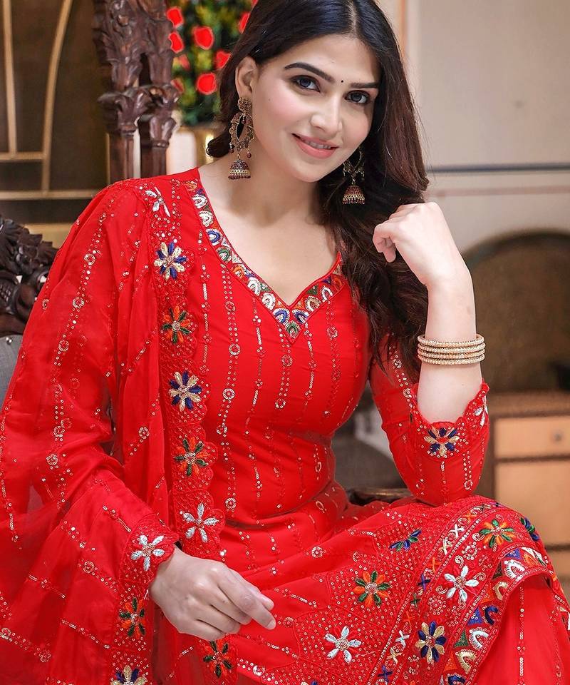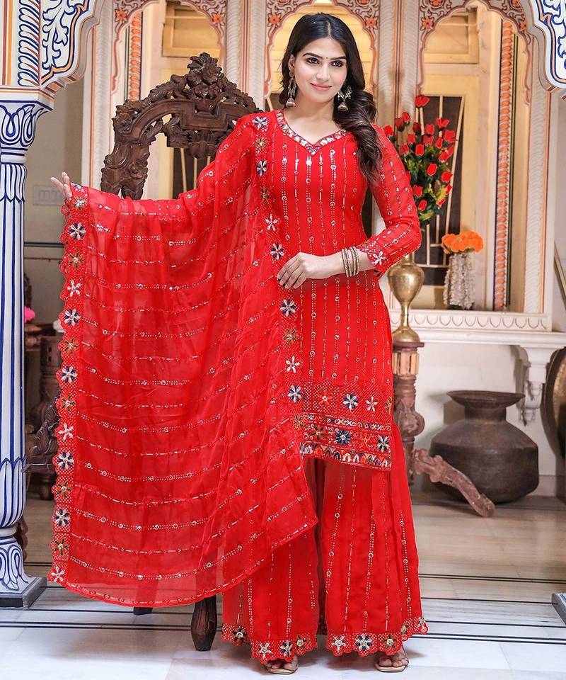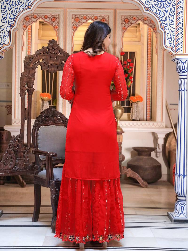 | Product Name | Women Red Sequinned Embroidered Georgette Kurta With Sharara & Dupatta | |