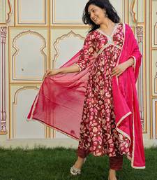 Maroon printed cotton kurta pant with dupatta
