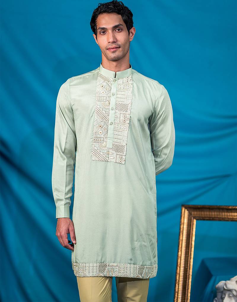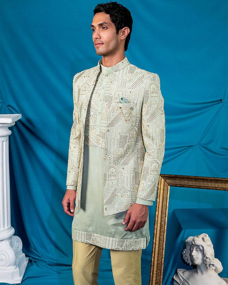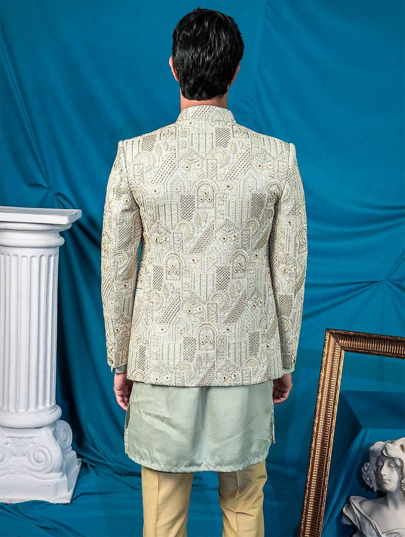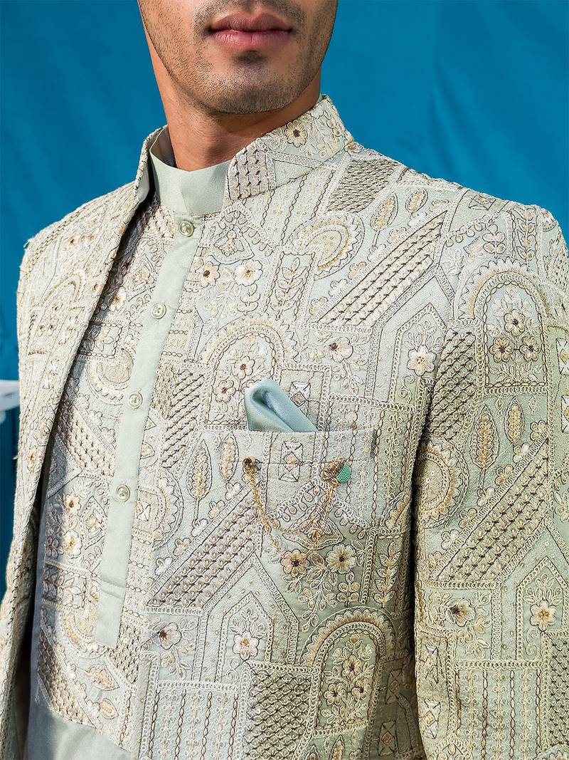 Pista green jodhpuri with indian heritage thread work and kurta