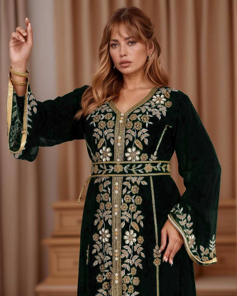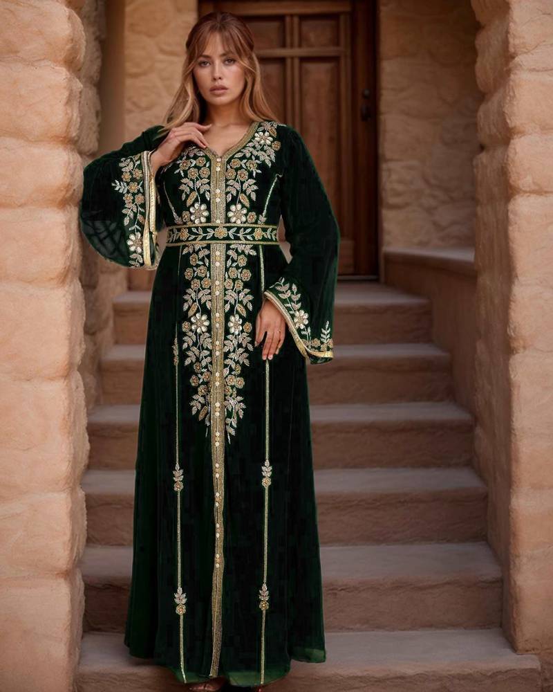 | Product Description | Luxury Black Color Full Sleeves Moroccan Kaftan, This Luxurious Design That's Sure To Turn Heads, This Kaftan Dress Flows Over Curves And Boasts An Ornate Embellished Design With Golden & Beads, And Beautiful Crystal Stones. |