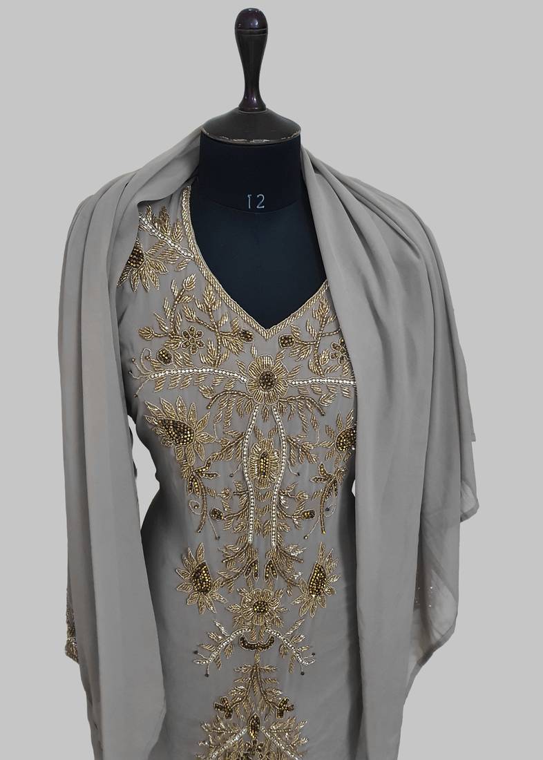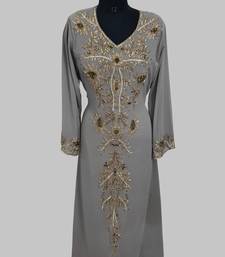 | Product Name | Elegant Grey Georgette Kaftan Gown With Golden Zari Work With Hijab. | |