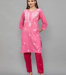 Ethnava women's lucknowi chikankari hand embroidered cotton straight kurta