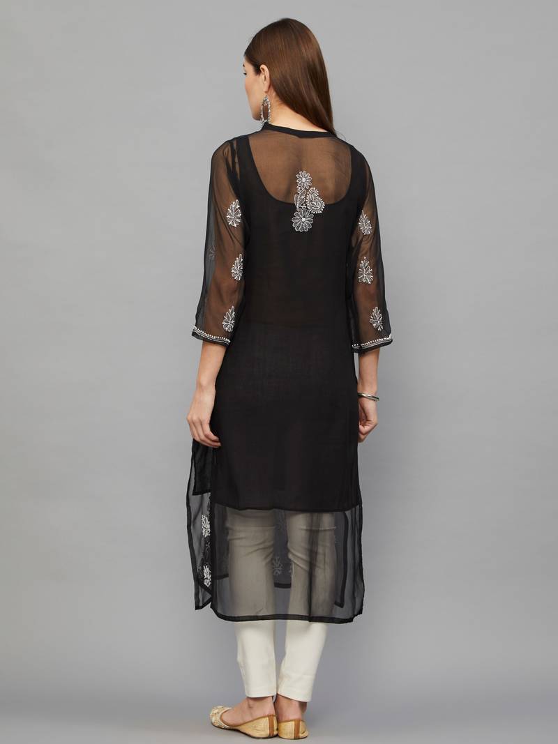 | Product Description | This Black Kurti Is Made Of Georgette Fabric. This Kurti Is Crafted By Hand. Embroidery Such As "Bakhiya", "Keel" And "Phanda," Is Done On This Chikankari Kurta. It Has 3/4th Sleeves And Round Neck. A Slip Is Included With It. |