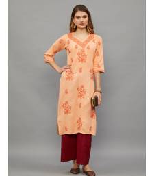 Ethnava peach matty cotton lucknowi chikankari womens kurta