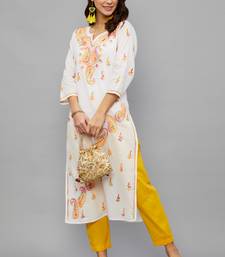 Ethnava women's chikankari hand embroidered cotton straight kurta