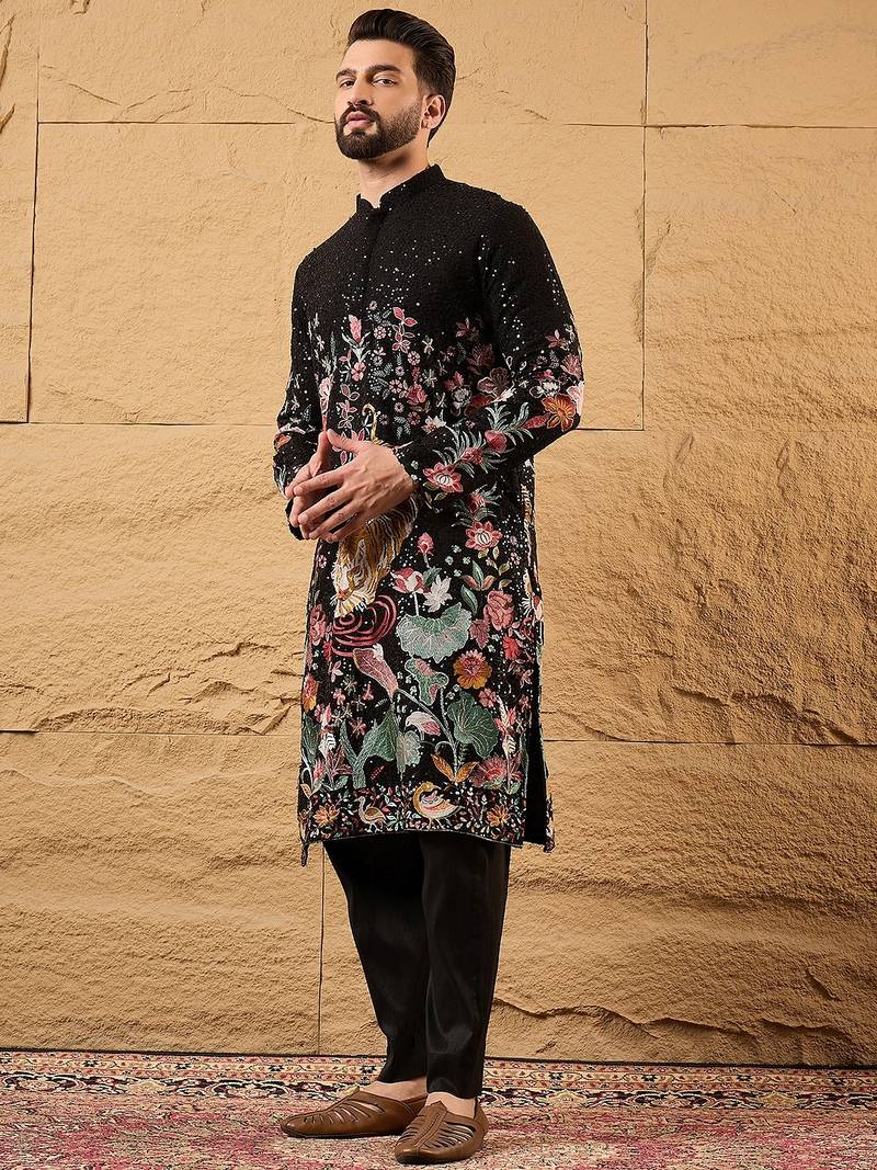 | Product Name | Men Black Georgette Solid Embroidered Straight Kurta | |