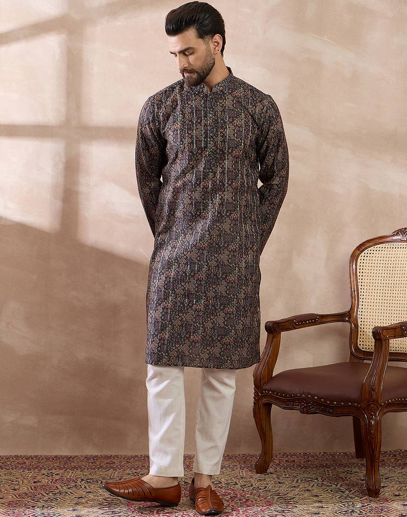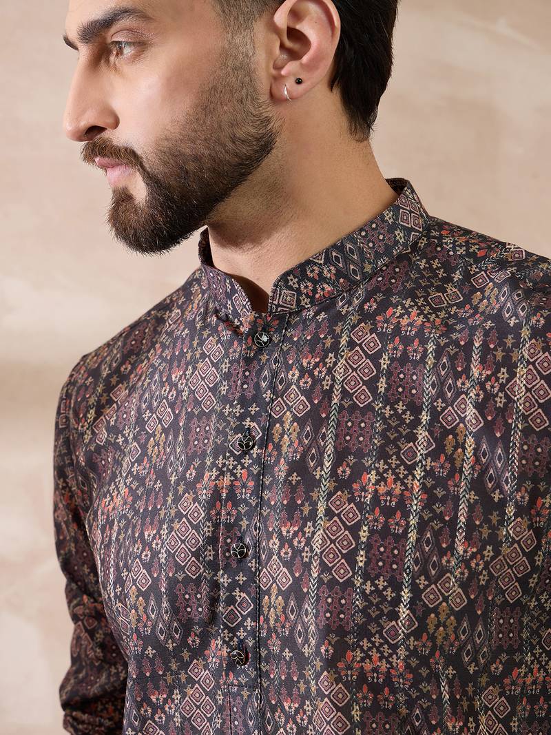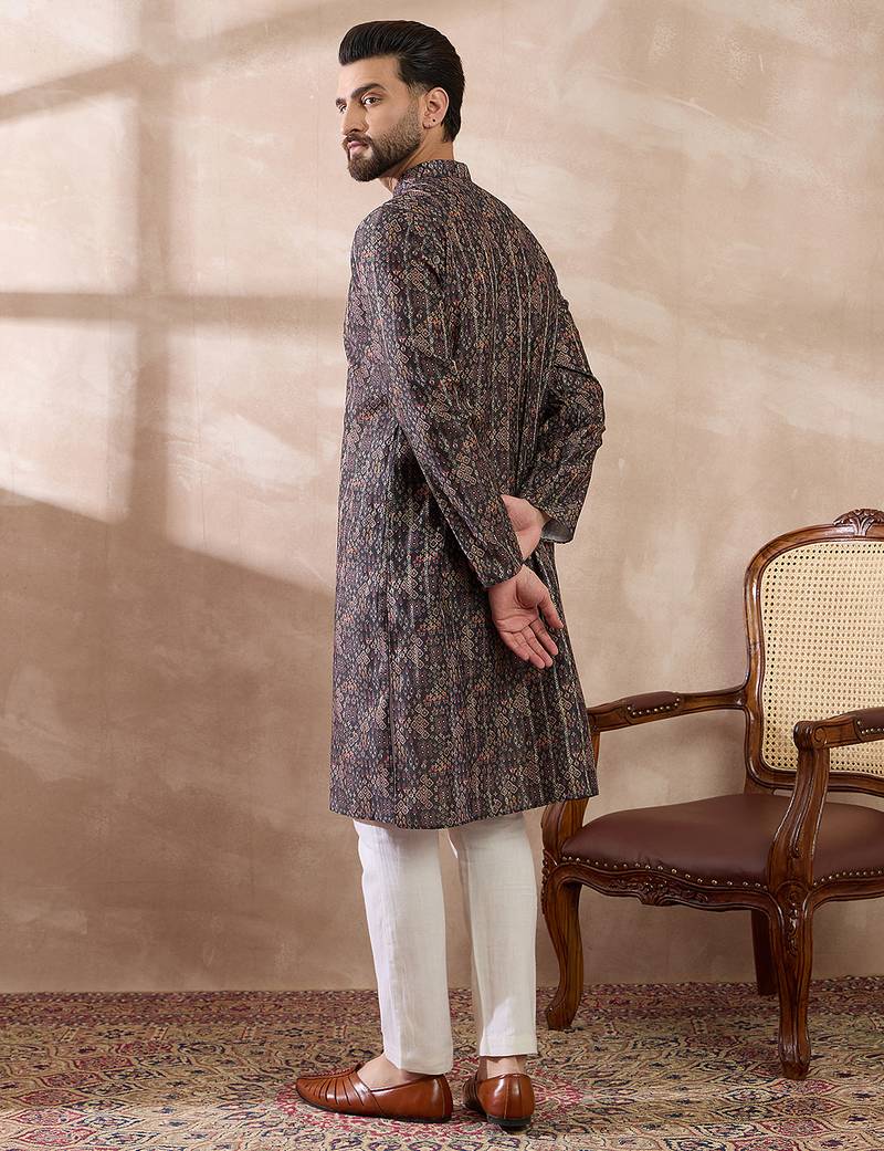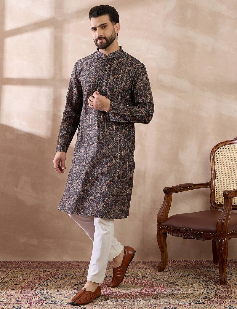 | Product Name | Men Black Silk Blend Printed Mandarin Collar Straight Kurta | |