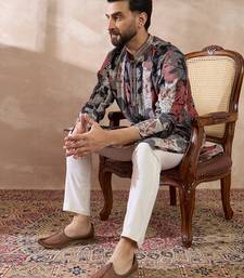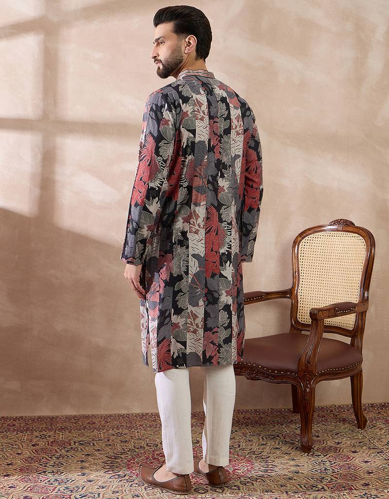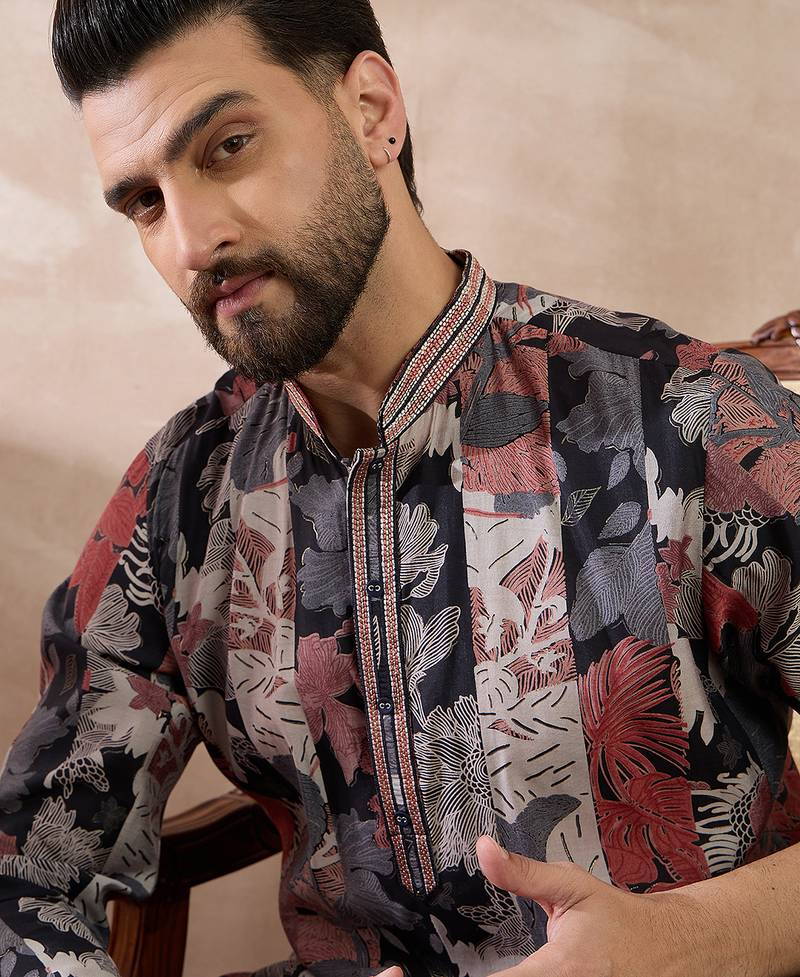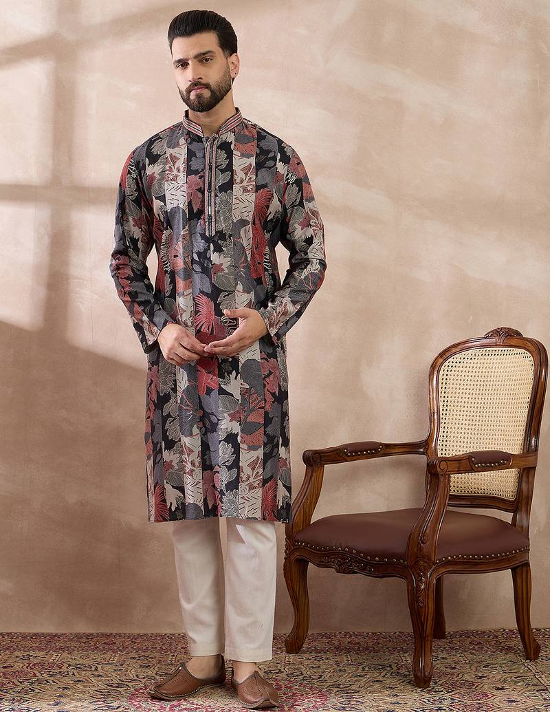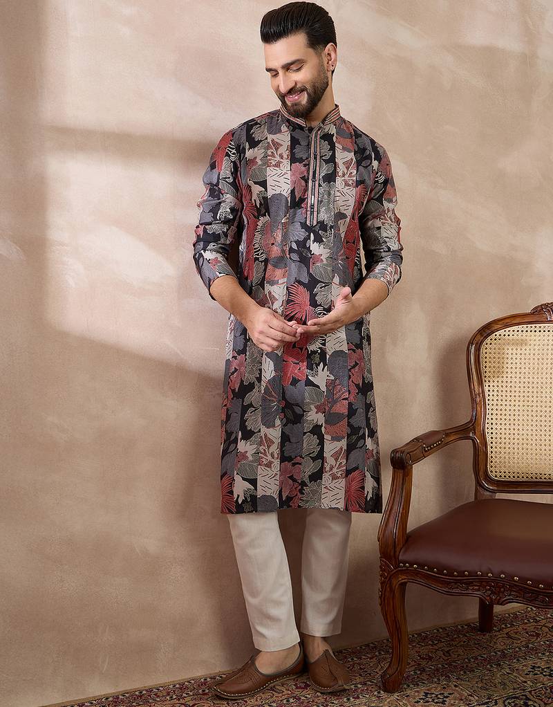 | Product Name | Men Black Silk Blend Printed Mandarin Collar Straight Kurta | |