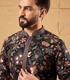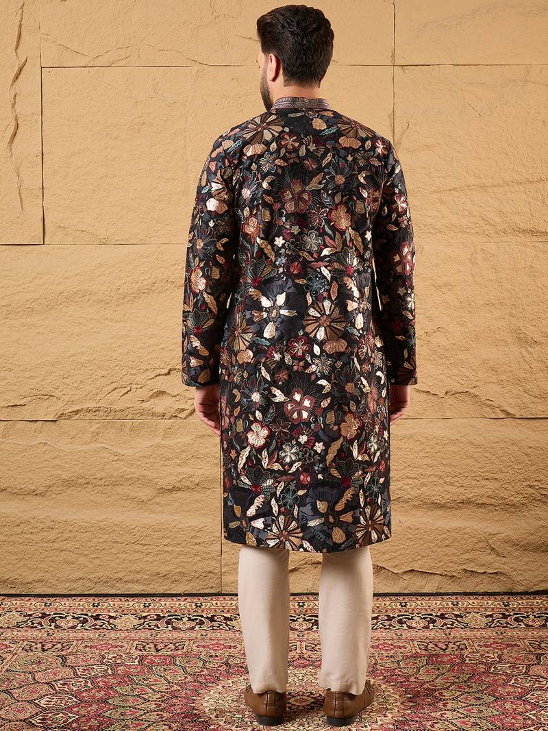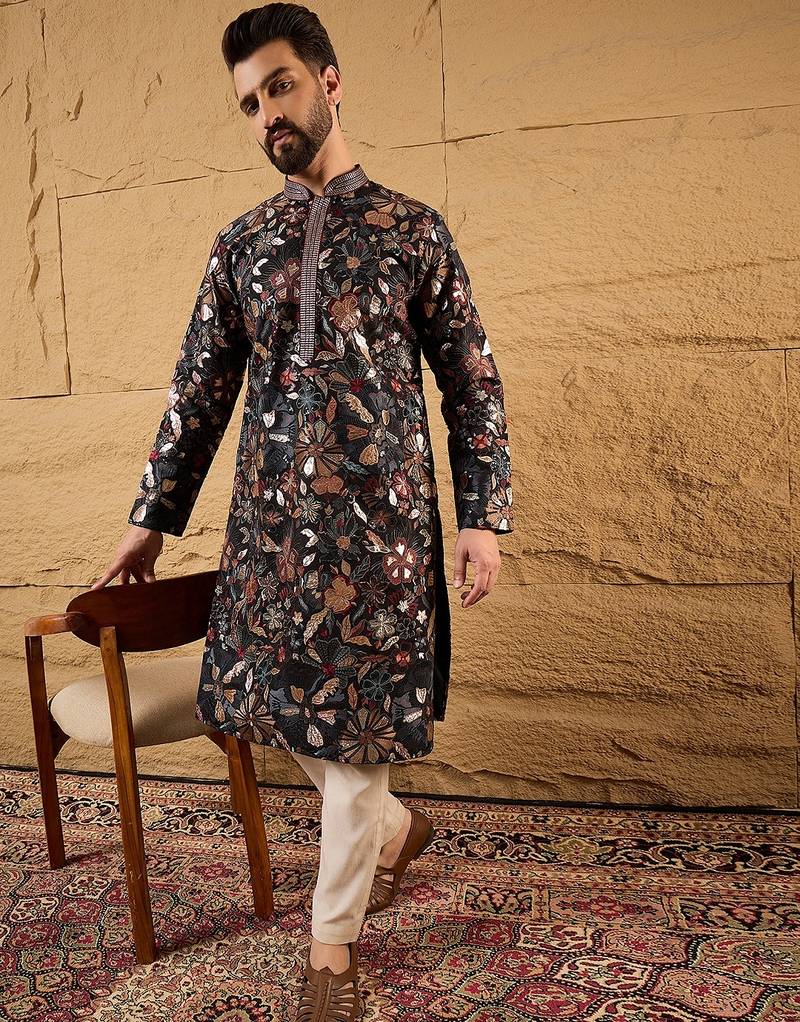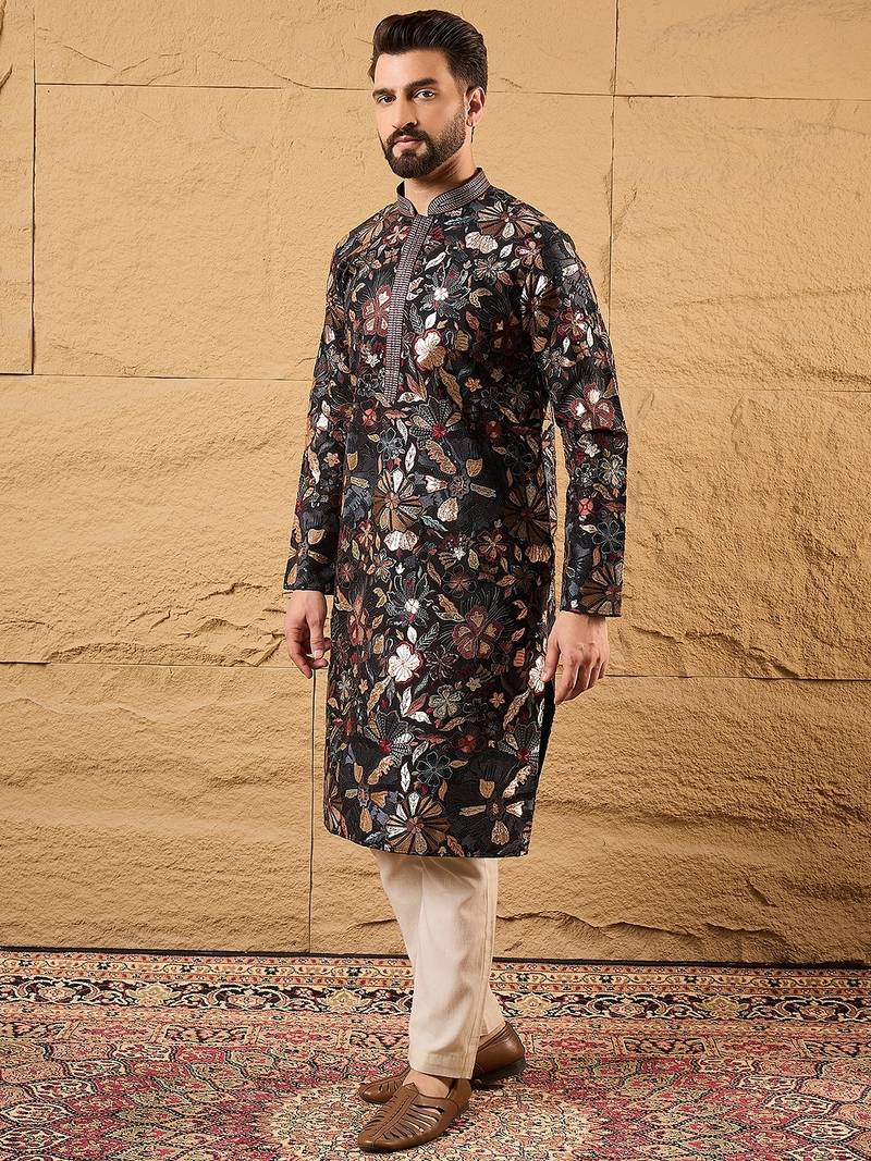 | Product Name | Men Black Silk Blend Solid Embroidered Straight Kurta | |