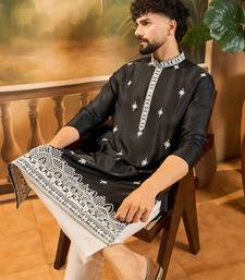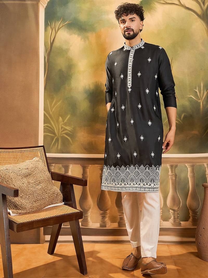 | Product Name | Men Black Silk Blend Solid Embroidered Straight Kurta | |