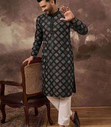 | Product Name | Men Black Silk Blend Solid Embroidered Straight Kurta With Pant Set | |