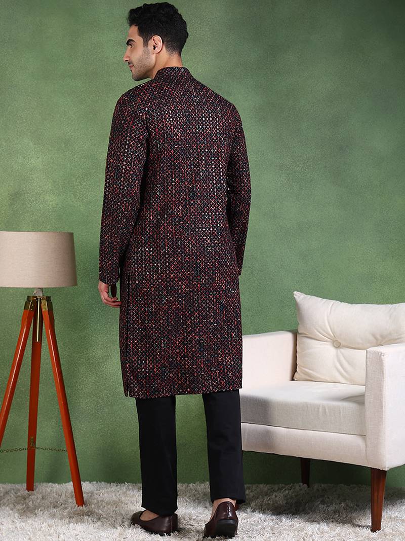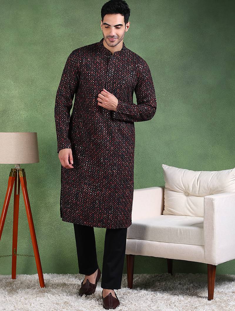 | Product Name | Men Black Viscose Rayon Ethnic Motifs Embroidered Straight Kurta | |