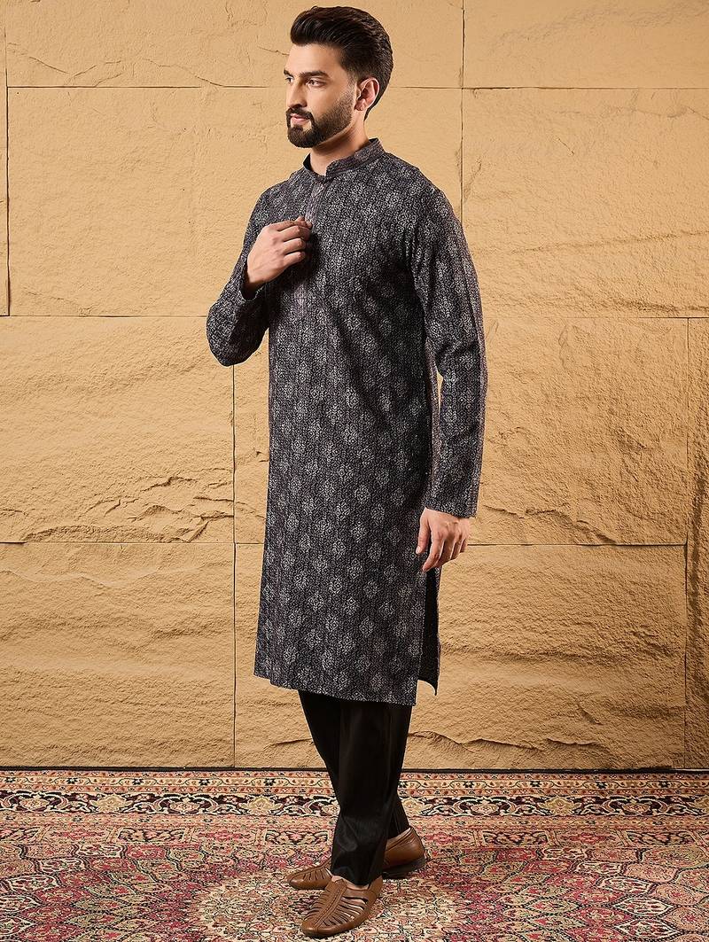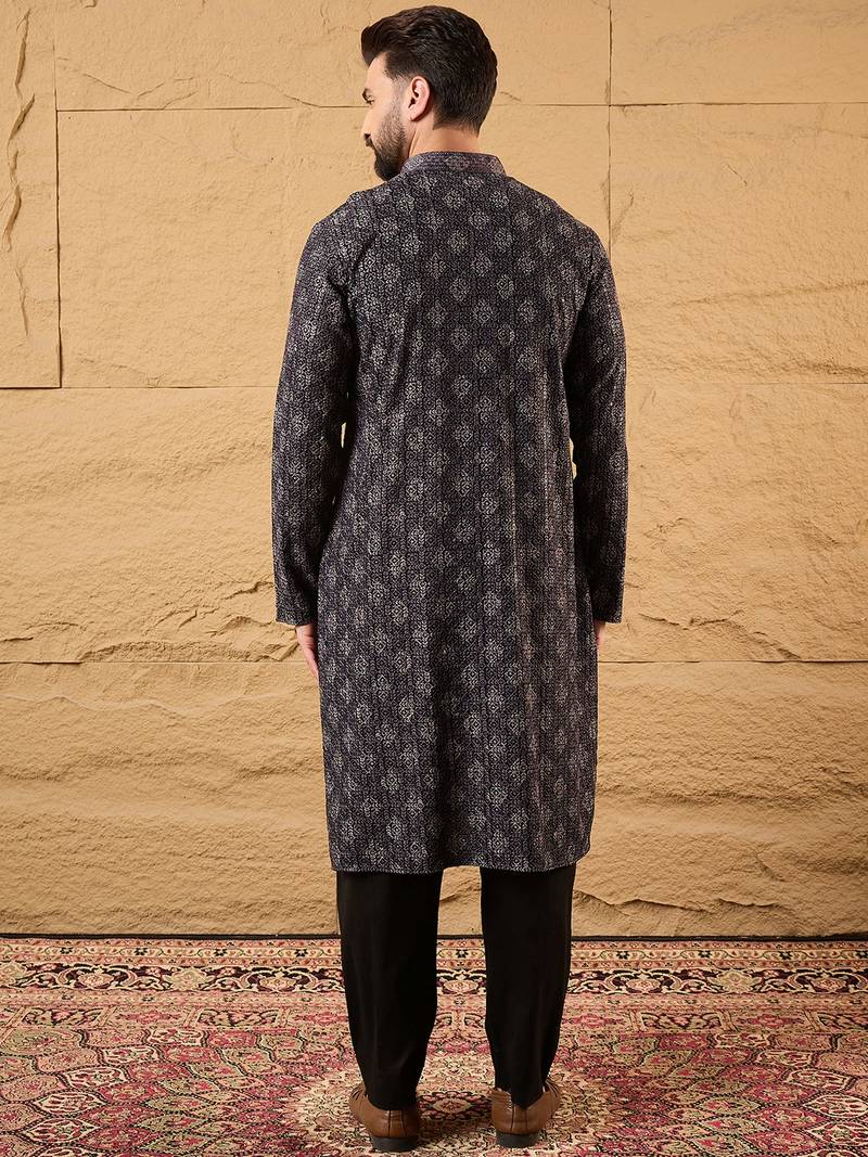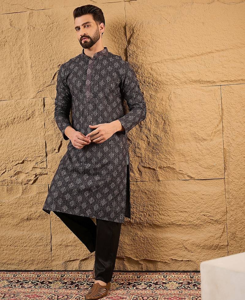 | Product Name | Men Black Viscose Rayon Ethnic Motifs Embroidered Straight Kurta | |