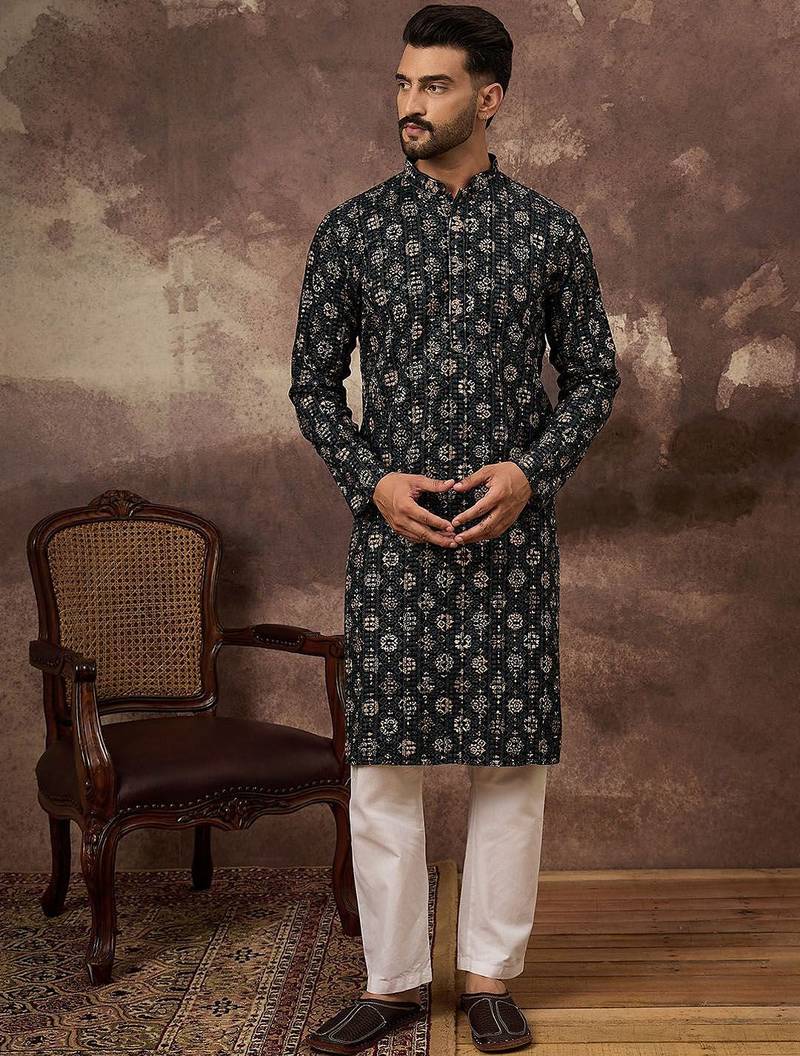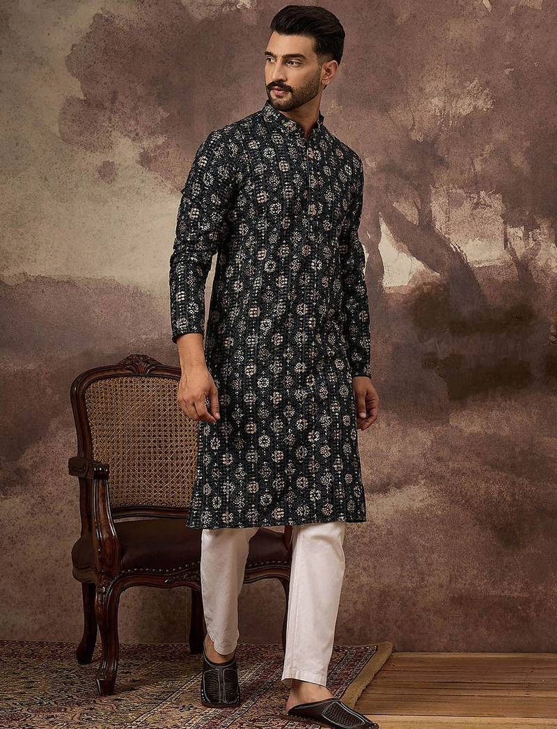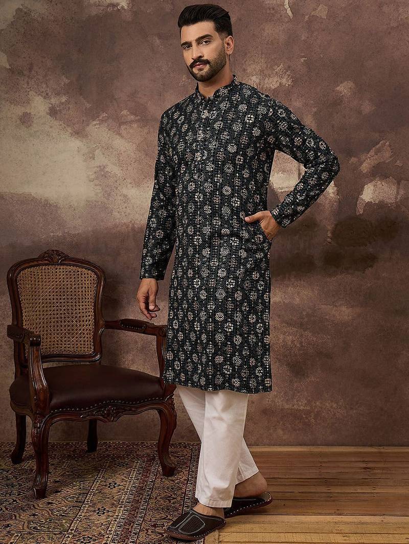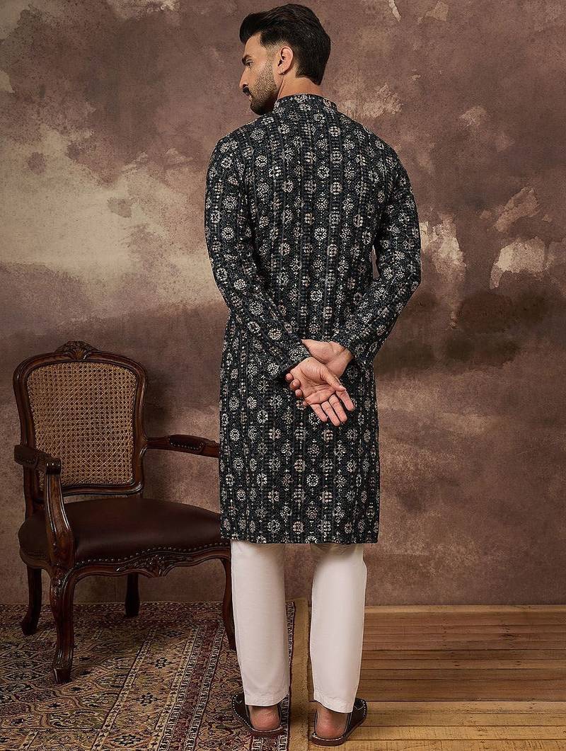 | Product Name | Men Black Viscose Rayon Geometric Embroidered Straight Kurta | |