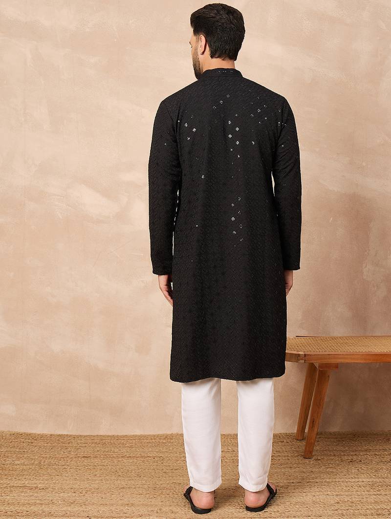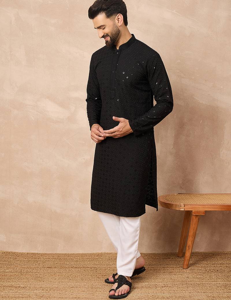 | Product Name | Men Black Viscose Rayon Solid Embroidered Straight Kurta | |