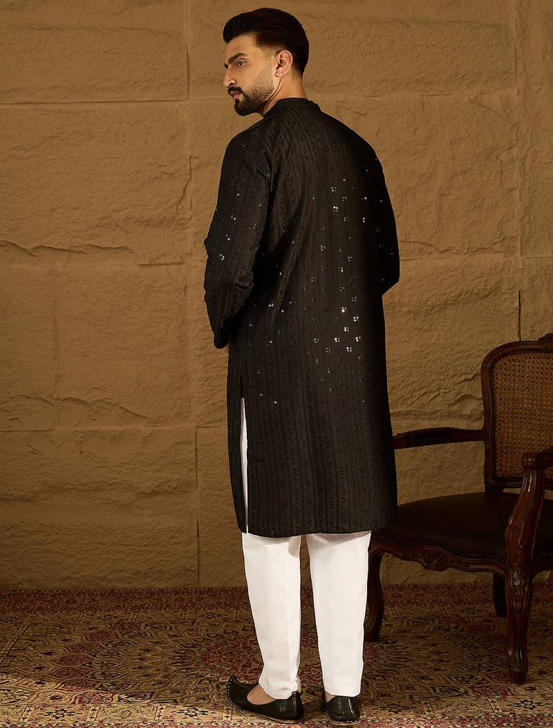 | Product Name | Men Black Viscose Rayon Solid Embroidered Straight Kurta | |