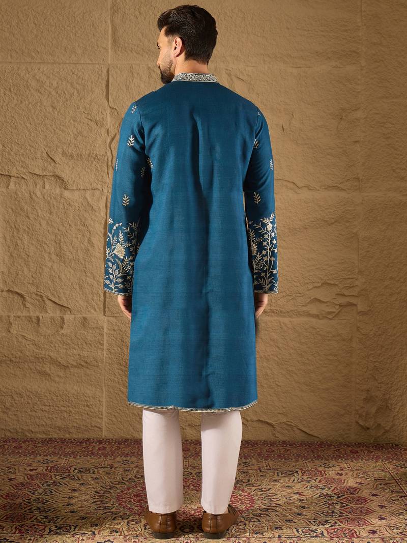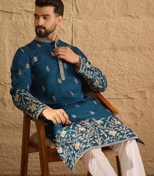 | Product Name | Men Blue Chanderi Silk Solid Embroidered Straight Kurta With Trouser | |