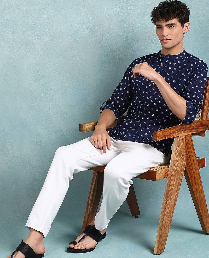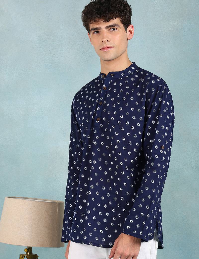 | Product Name | Men Blue Cotton Bandhani Printed Straight Short Kurta | |