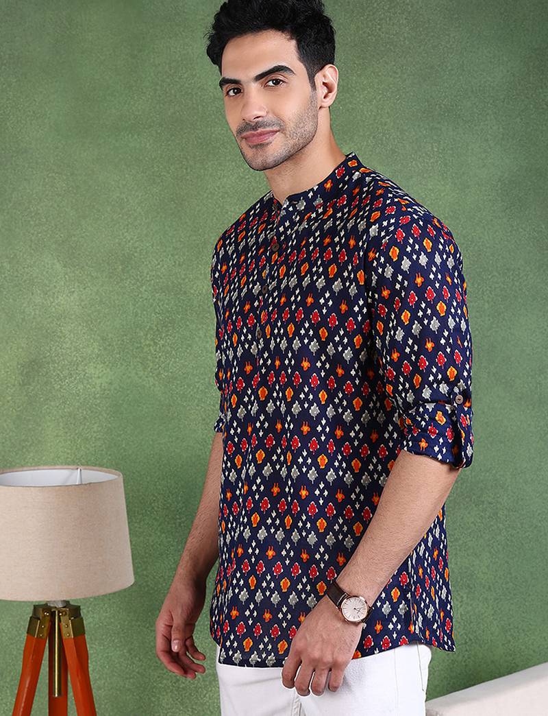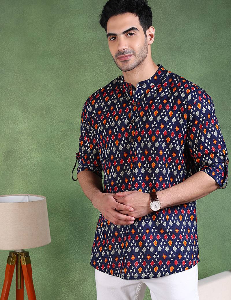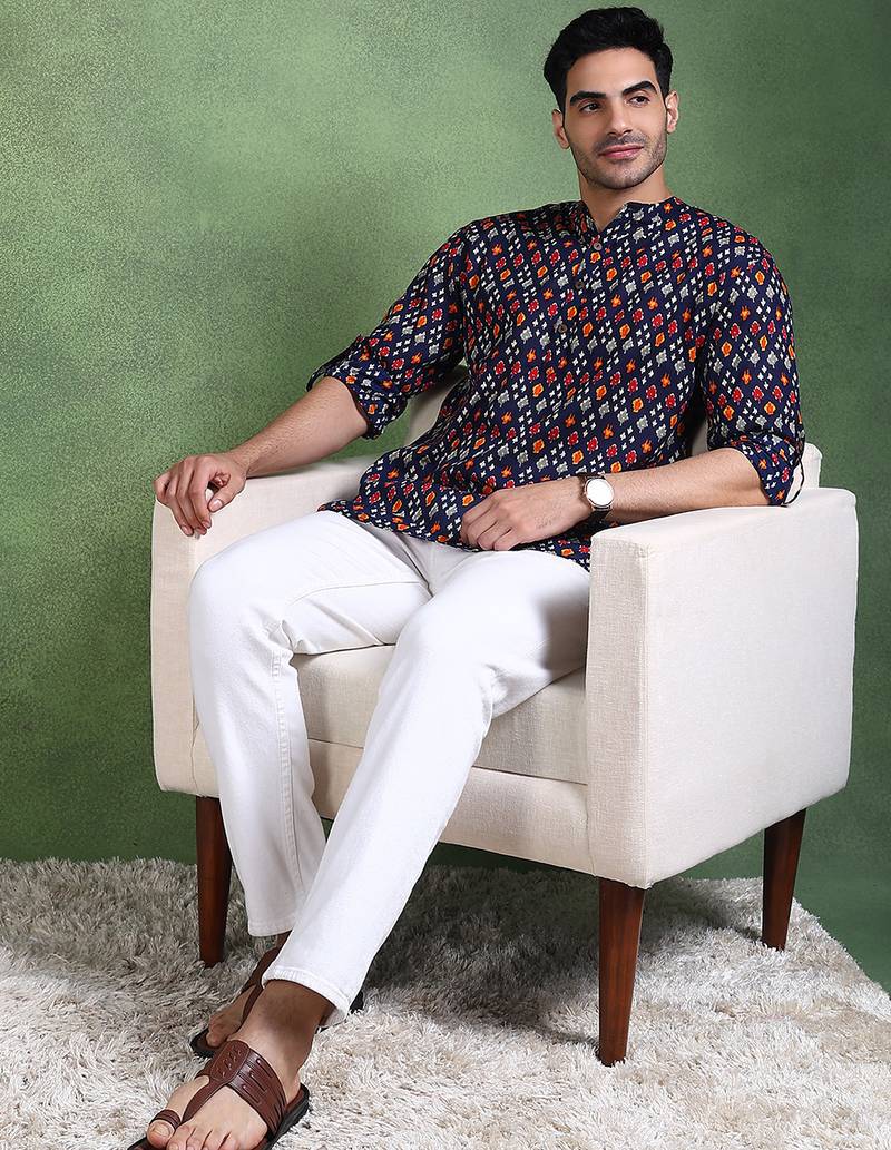 | Product Name | Men Blue Cotton Geometric Printed Straight Short Kurta | |