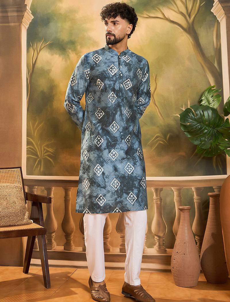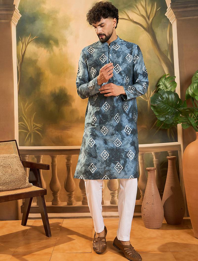 | Product Name | Men Blue Silk Blend Batik Embroidered Straight Kurta | |