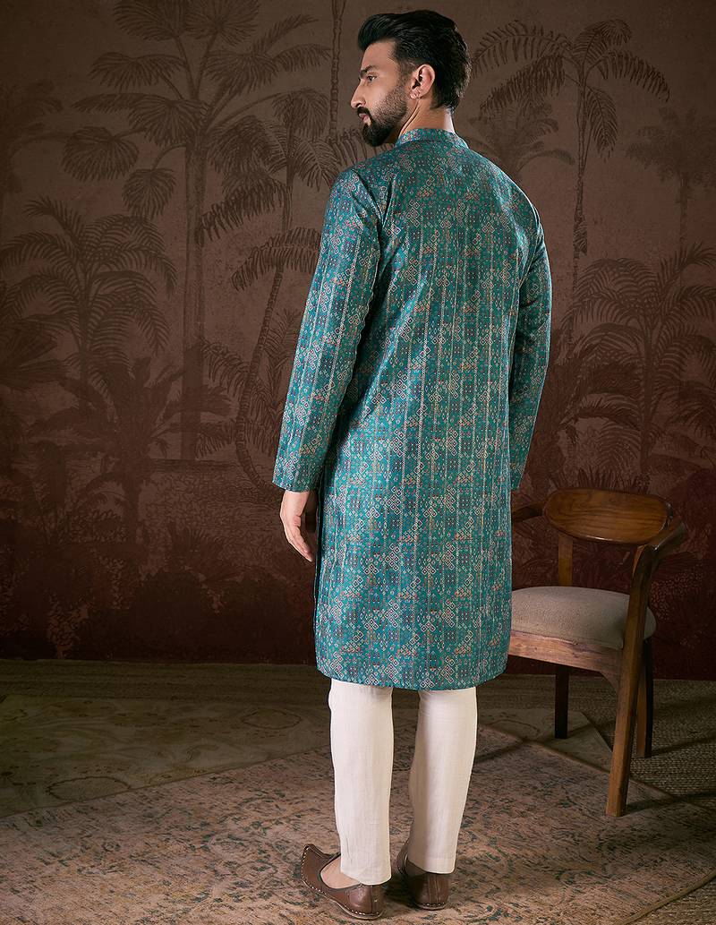 | Product Name | Men Blue Silk Blend Ethnic Motifs Printed Straight Kurta | |