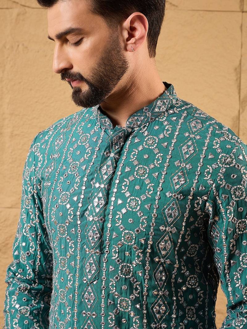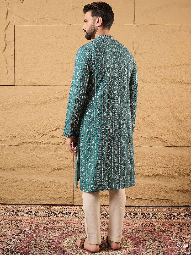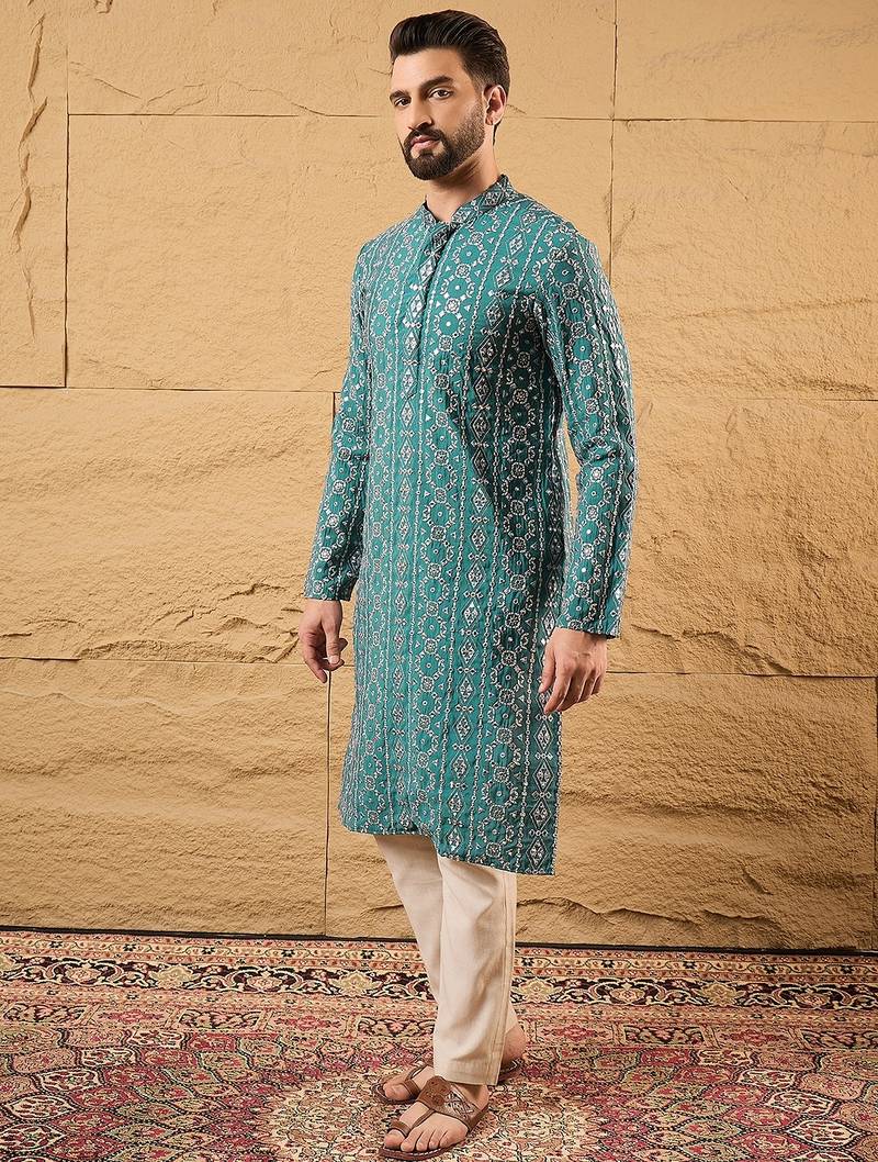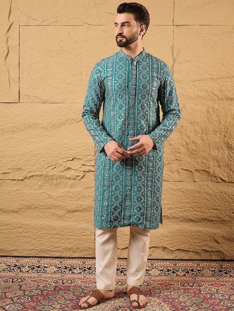 | Product Name | Men Blue Silk Blend Solid Embroidered Straight Kurta | |