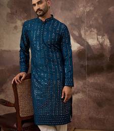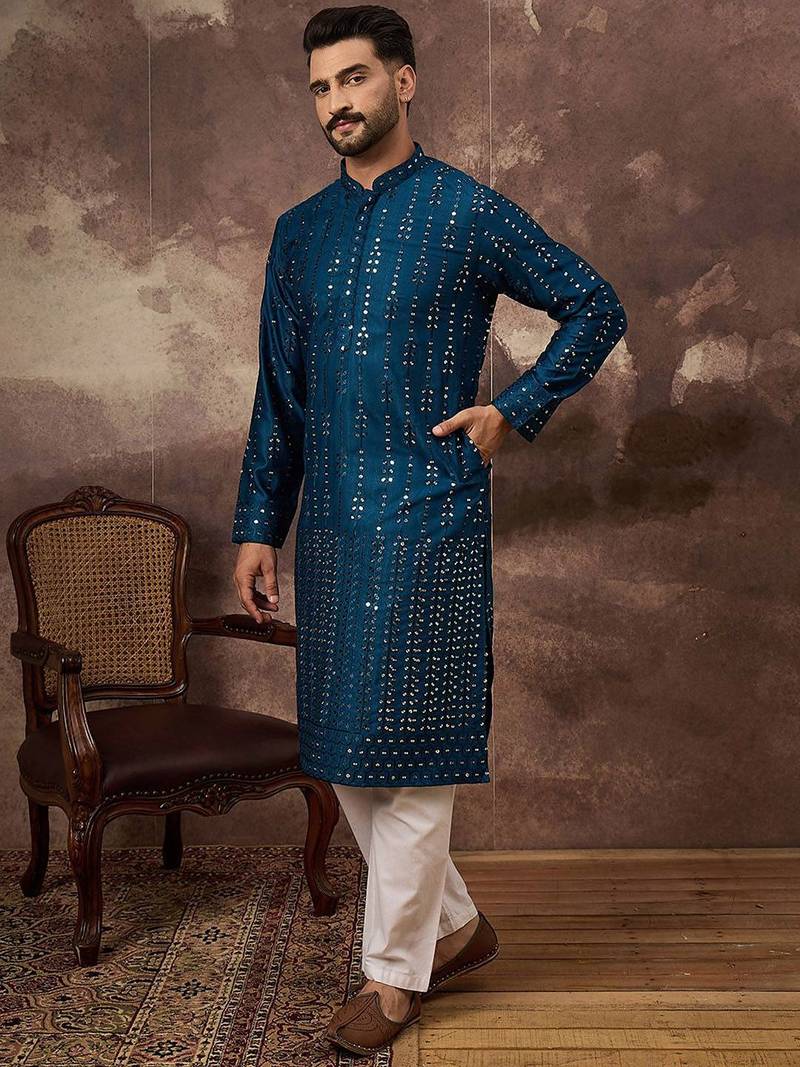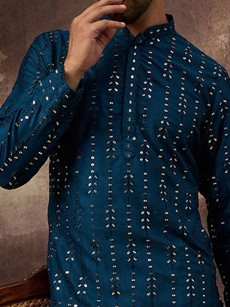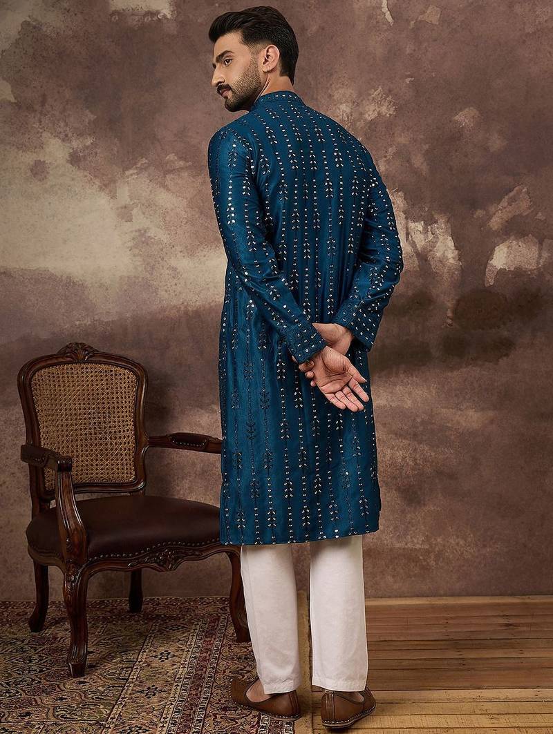 | Product Name | Men Blue Silk Blend Solid Embroidered Straight Kurta With Pant Set | |