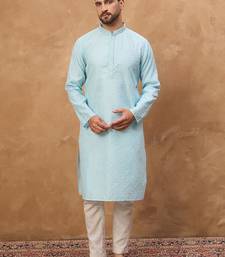 | Product Name | Men Blue Silk Blend Solid Embroidered Straight Kurta With Pant Set | |