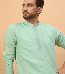 | Product Name | Men Blue Silk Blend Solid Embroidered Straight Kurta With Pant Set | |