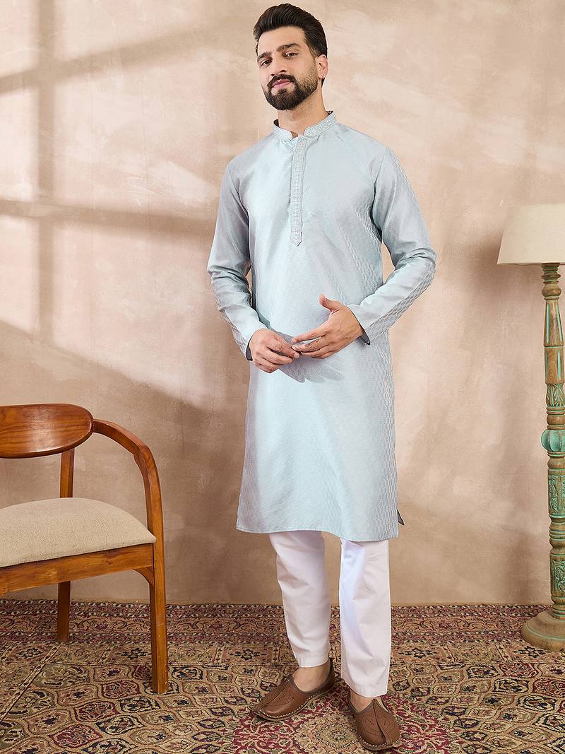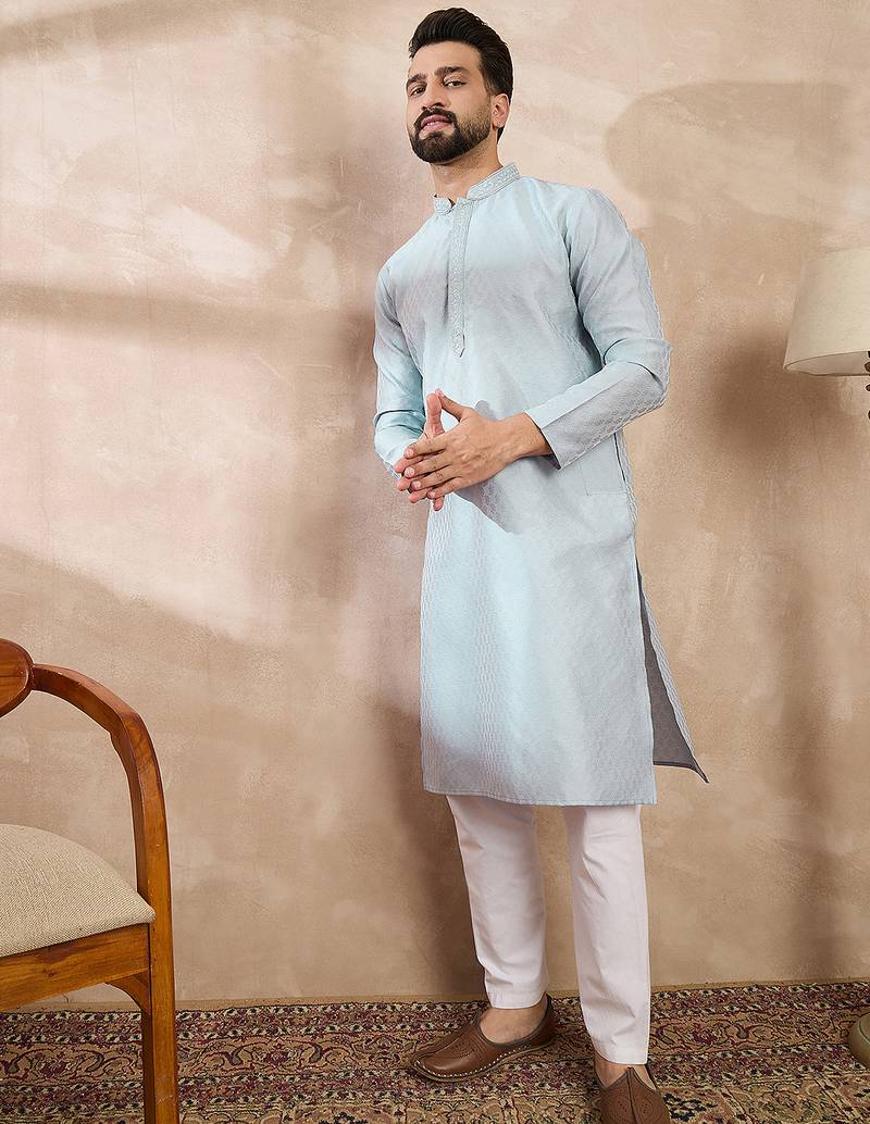 | Product Name | Men Blue Silk Blend Solid Woven Design Straight Kurta | |