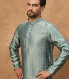 Men blue silk blend solid woven design straight kurta