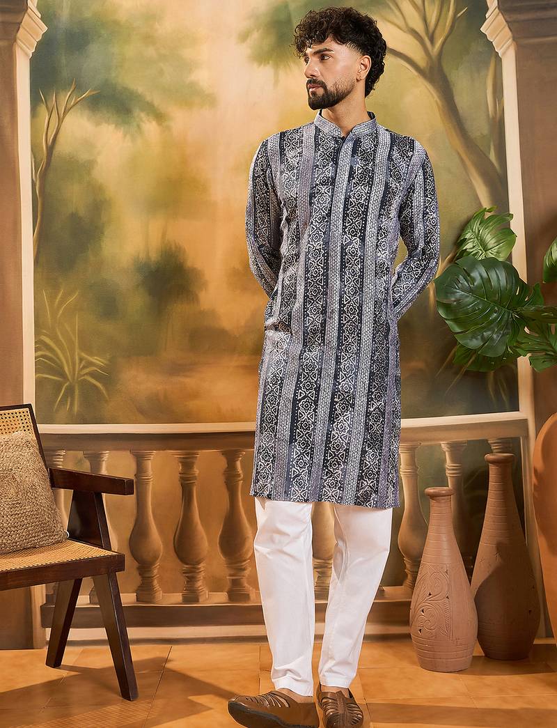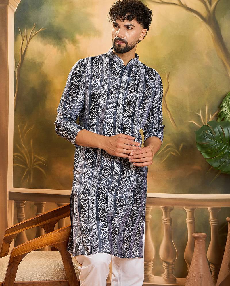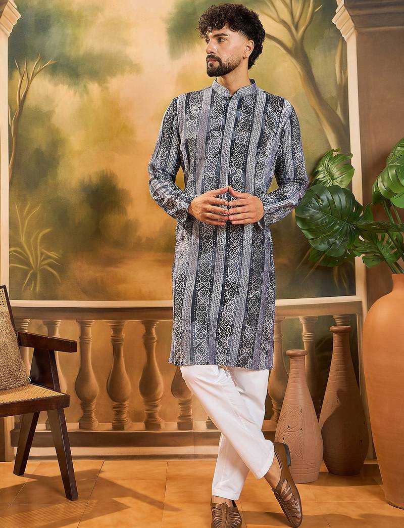 | Product Name | Men Blue Viscose Rayon Batik Embroidered Straight Kurta | |