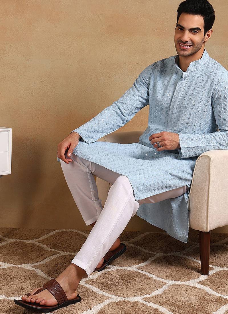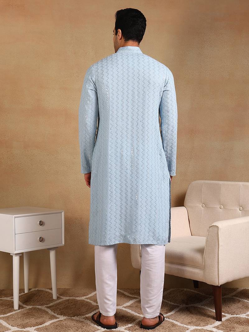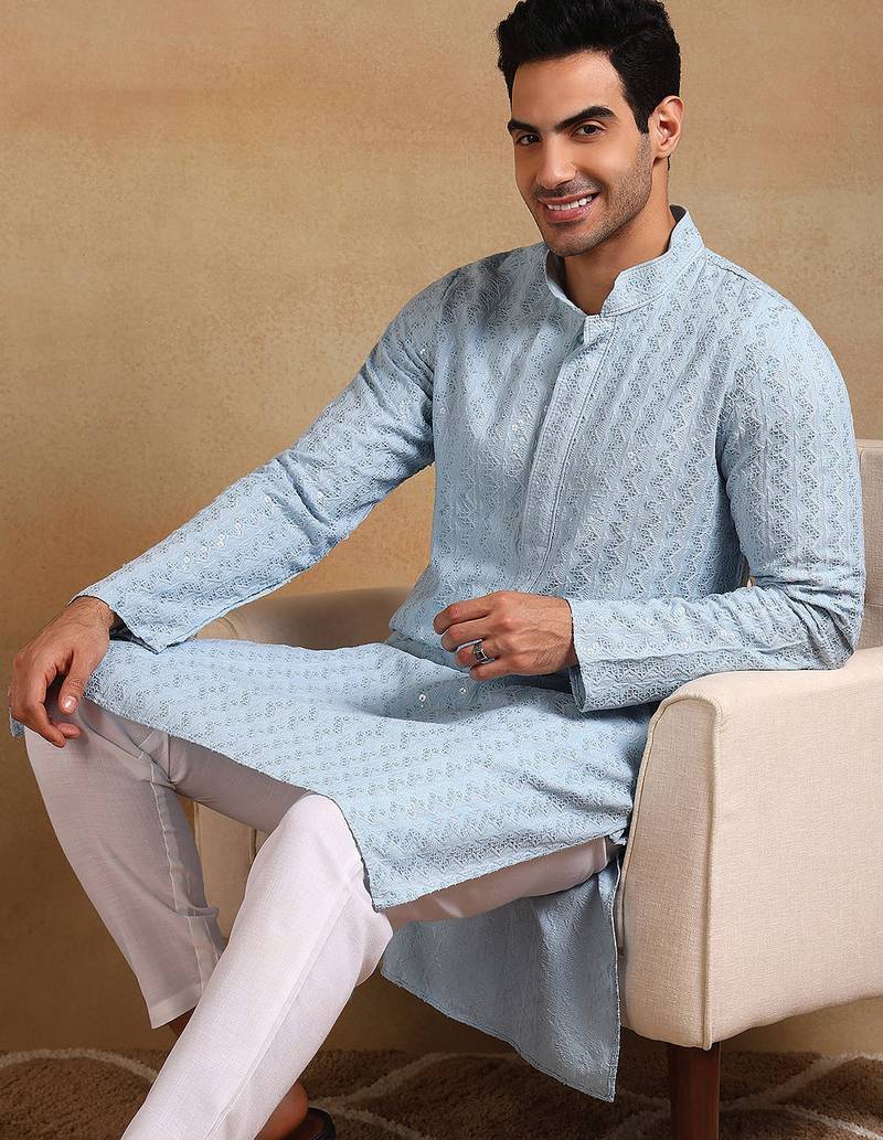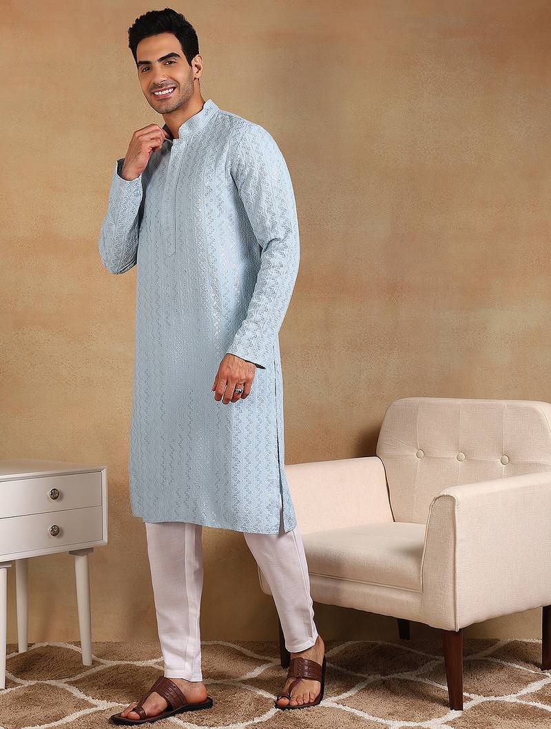 | Product Name | Men Blue Viscose Rayon Solid Embroidered Straight Kurta | |