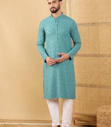 | Product Name | Men Blue Viscose Rayon Solid Embroidered Straight Kurta With Trouser | |