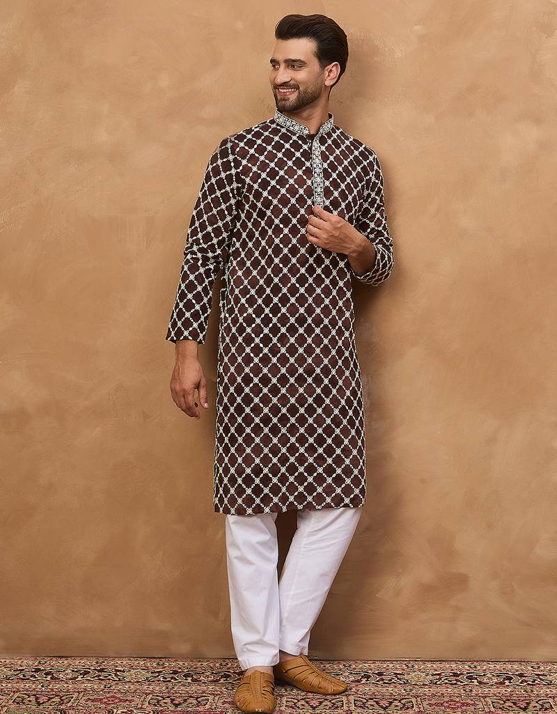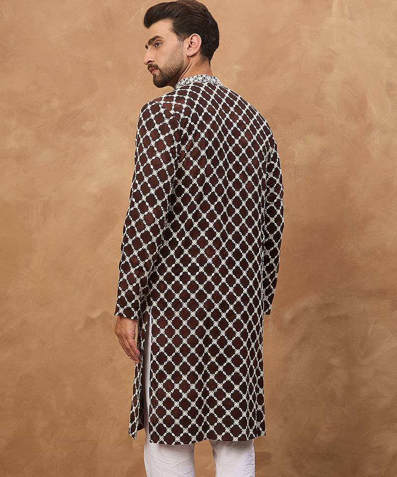 | Product Name | Men Brown Viscose Rayon Solid Embroidered Straight Kurta | |