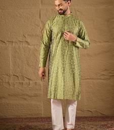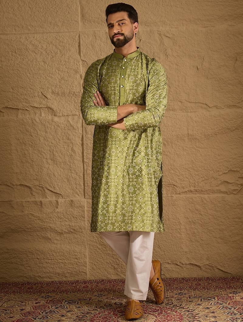 | Product Name | Men Green Pure Silk Geometric Printed Straight Kurta With Trouser | |