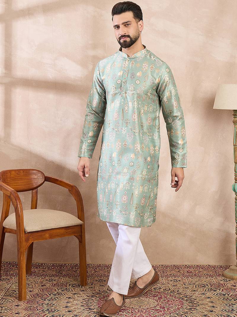 | Product Name | Men Green Silk Blend Floral Printed Straight Kurta | |