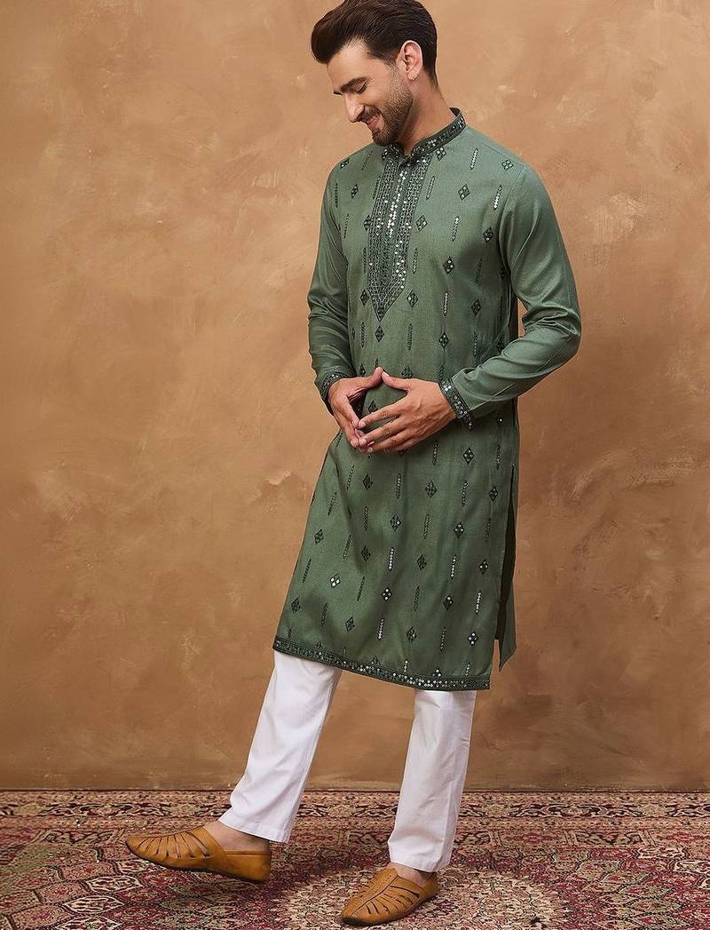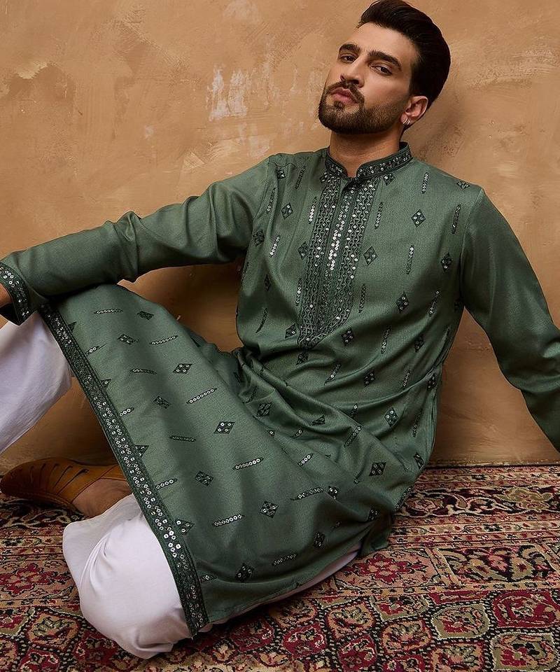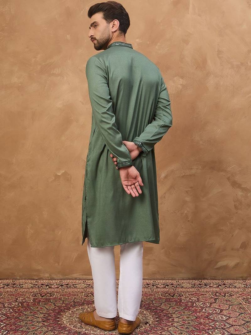 | Product Name | Men Green Silk Blend Geometric Embroidered Straight Kurta With Pant Set | |